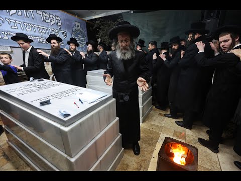 הרב אלימלך בידרמן בשריפת הפתילים בקבר הרב יצחק גברא בעגור