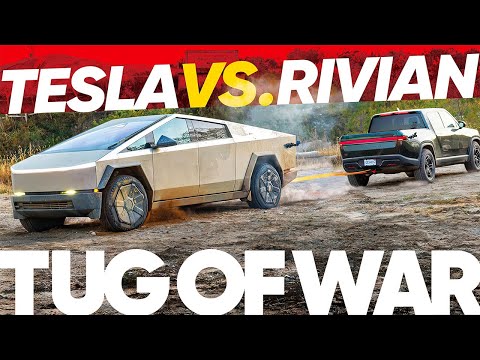 Tug of War! Tesla Cybertruck Beast vs. Rivian R1T Tri!