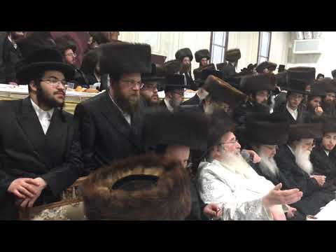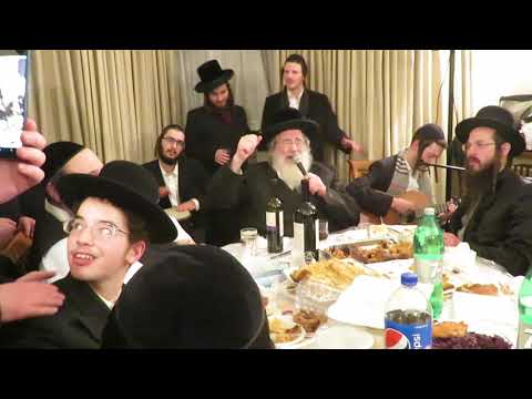 האדמו"ר מספינקא בשירה בעת סעודת ראש חודש לבני הקהילה בלונדון - אדר תש"פ
