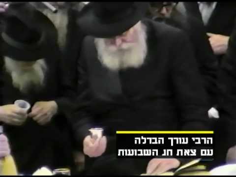 הרבי מליובאויטש מחלק כוס של ברכה במוצאי שבועות תשמ"ז