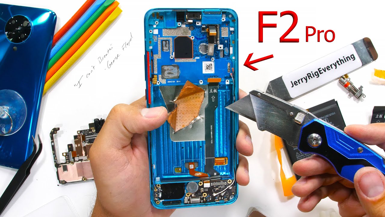 The Pocophone F2 Pro is ready to be taken apart. You can see the inside of your own phone with my dbrand skin HERE: https://www.dbrand.com/teardown Its much safer. The Poco F2 Pro had a motorized camera. I say 'had' because between this video and the and the durability test... the PocoPhone F2 pop up camera stopped working. Today we are going to see what went wrong with that pop up camera. And see if this Poco Phone F2 will still work when we put it all back together again. For real though. Be nice. Listen. And VOTE for the change you want to see. Visit https://www.vote.org/ it takes less than 2 minutes to register to vote. PocoPhone F2 Pro durability test: https://youtu.be/PKZr3RQdci0 *Follow me for updates!* Instagram: http://instagram.com/zacksjerryrig Facebook: http://on.fb.me/1U4bQqv Twitter: https://twitter.com/ZacksJerryRig LARGE tool kit: http://amzn.to/2DURcr7 Travel Tool Kit: https://amzn.to/30LKXOY Green Pry tool: http://amzn.to/1Tu57pI Metal phone opening tool: http://amzn.to/1WdOFv0 The camera I used to film this video: http://amzn.to/2p7GtkX The Lens I used for this video: http://amzn.to/1QOXDw2 Wide angle lens: http://amzn.to/2qiYM4u And this Metabones adapter: http://amzn.to/2iZ67Ty This is the drone I use: https://click.dji.com/AI2tmSb0onM9XPVwb-Se0g TO SEND ME STUFF: See my P.0. Box on my 'About page': https://www.youtube.com/user/JerryRigEverything/about JerryRigEverything assumes no liability for property damage or injury incurred as a result of any of the information contained in this video. JerryRigEverything recommends safe practices when working with power tools, automotive lifts, lifting tools, jack stands, electrical equipment, blunt instruments, chemicals, lubricants, expensive electronics, or any other tools or equipment seen or implied in this video. Due to factors beyond the control of JerryRigEverything, no information contained in this video shall create any express or implied warranty or guarantee of any particular result. Any injury, damage or loss that may result from improper use of these tools, equipment, or the information contained in this video is the sole responsibility of the user and not JerryRigEverything. Only attempt your own repairs if you can accept personal responsibility for the results, whether they are good or bad.