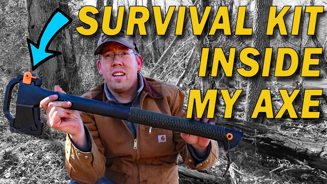 Wilderness Survival Kit inside my axe - DIY survival kit & paracord wrap ax handle