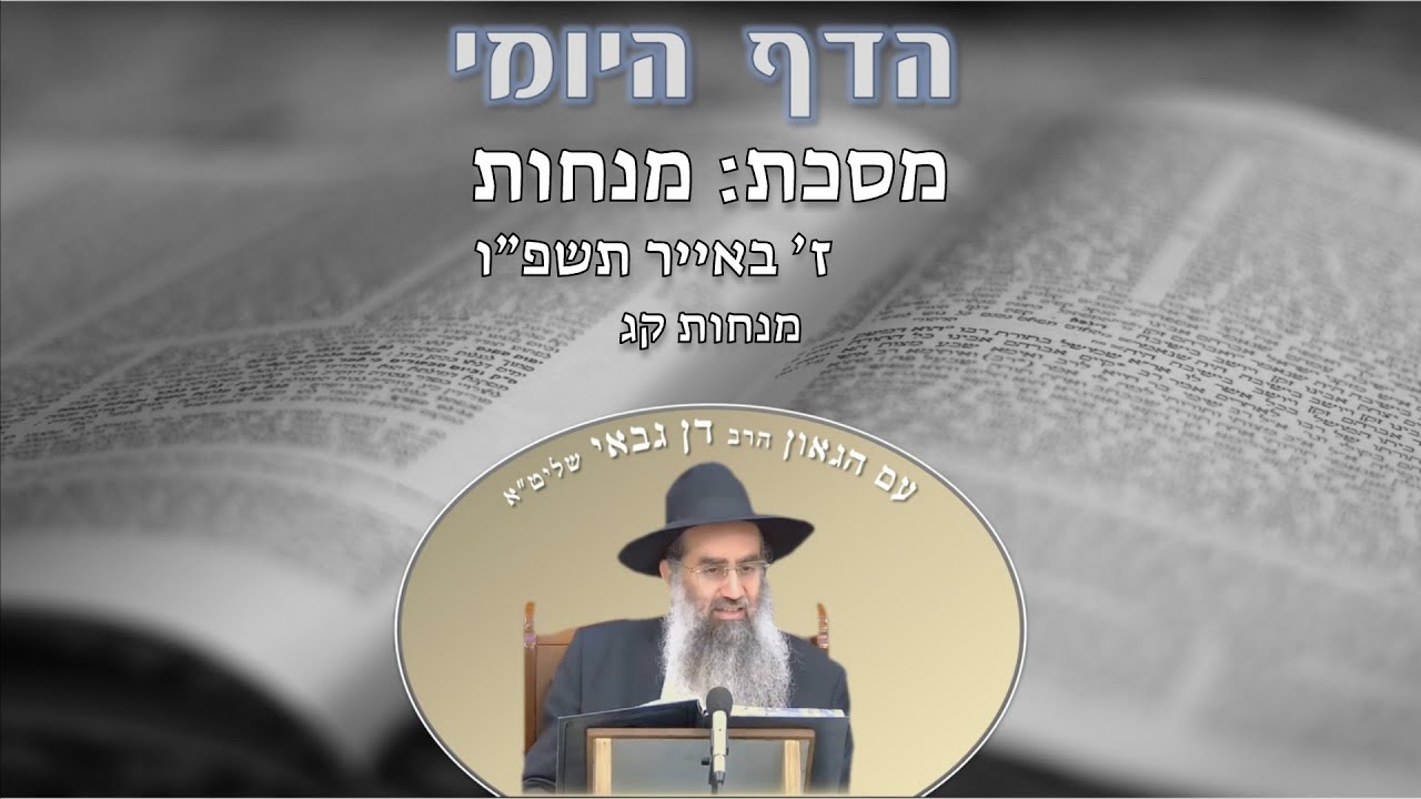 הדף היומי מסכת מנחות דף קב ו׳ באייר תשפ״ו מפי מו"ר הרב דן גבאי שליט"א