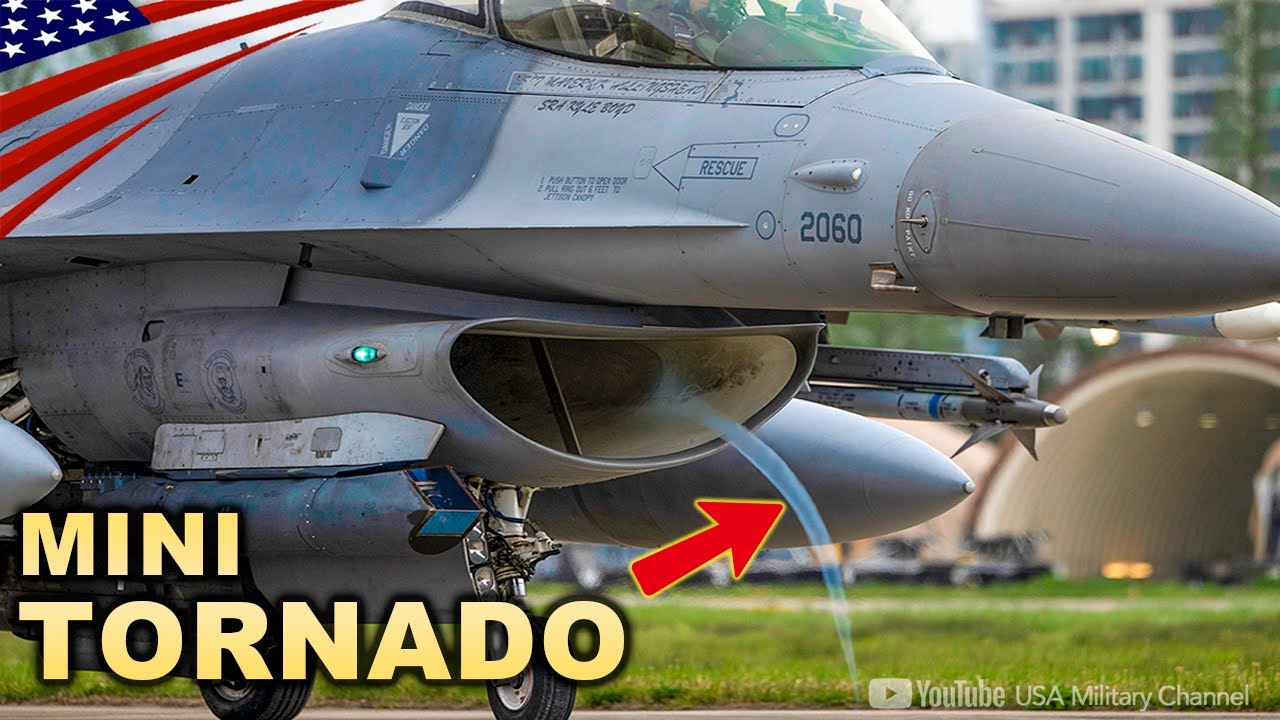 This is a vortex (mini tornado) caused by the F-16 fighter jet's air intake and are usually visible in high humidity or wet weather. So important to have a clean and FOD (foreign object damage) free taxiway and runway cause it will pretty much suck up anything. Click here to Subscribe USA Military Channel: https://www.youtube.com/subscription_center?add_user=UsaMilitaryChannel Film Credits: U.S. Air Force Video by A1C Isabella Graham, SMSgt Alexander Farver, SMSgt Carl Clegg, SrA Brooke Keisler, SrA Cydnie Williams, SrA Jack Layman, SrA Roswell Sartwell, SSgt Benjamin Ingold, SSgt Chanceler Nardone, SSgt Isaiah Soliz, SSgt Luke Milano, SSgt Ryan Brooks, TSgt Timothy Kirchner The appearance of U.S. Department of Defense (DoD) visual information does not imply or constitute DoD endorsement.