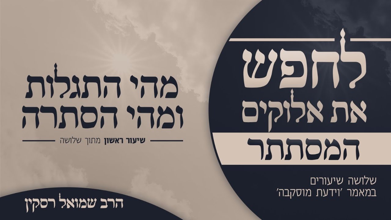 סדרה חדשה בת שלושה מפגשים בנושא האלוקים המסתתר, מתוך המאמר "וידעת מוסקבה" של הרבי הרש"ב השיעורים נמסרים ב בית מדרש ירושלמי מבית מעיינותיך