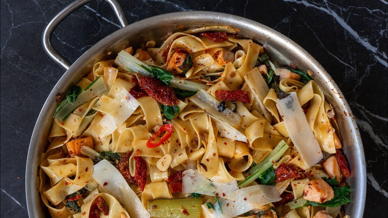 פפרדלה סלמון מנגולד ועגבניות מיובשות #יאבלולושמבלולו #מתכונים