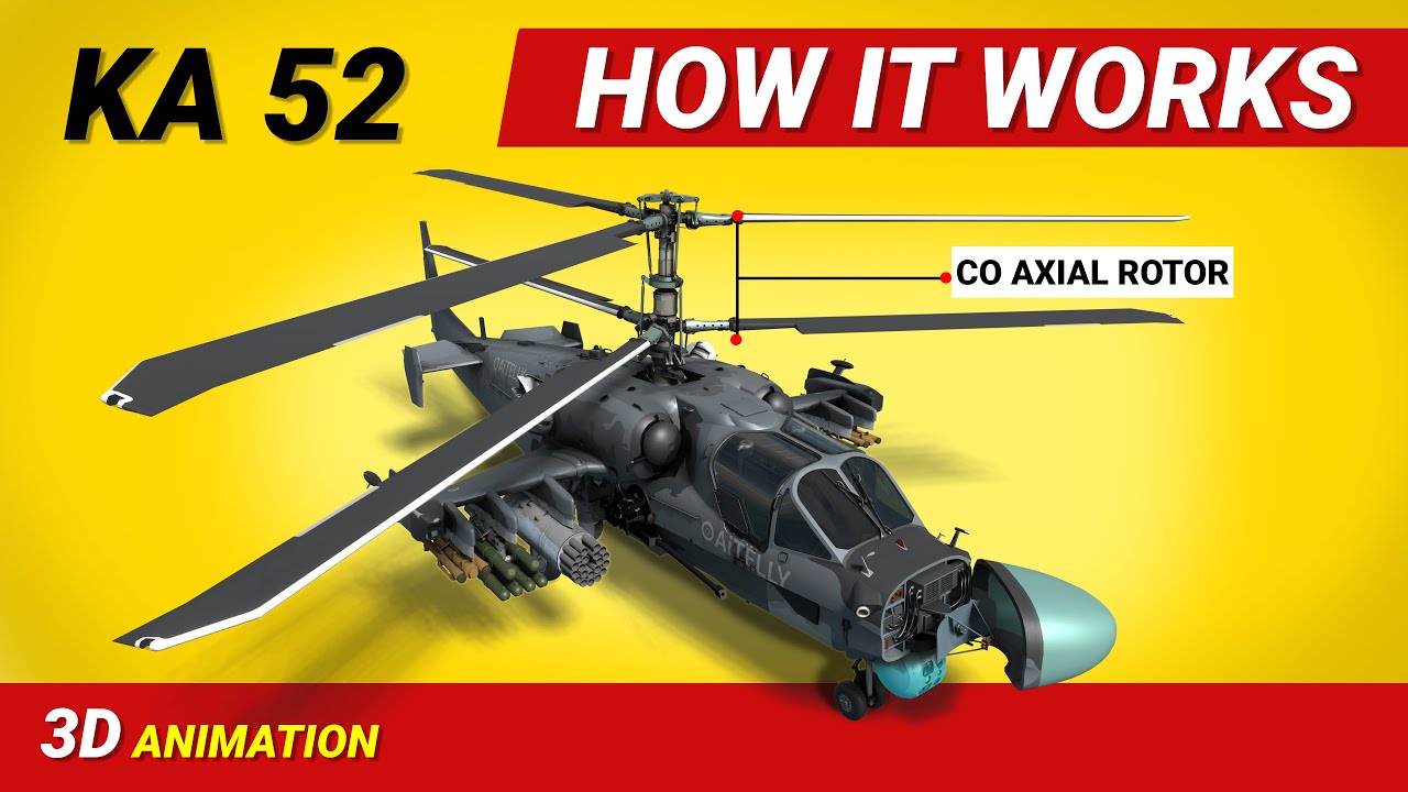 #ka52 #coaxialhelicopters #helicopter The Kamov, Ka-52 Alligator is an all-weather combat helicopter created by the Kamov Design Bureau. The Ka-52 is an upgraded version of The Ka-50 helicopter also known as Black Shark. It is intended to strike low-speed air targets as well as armored and unarmored ground targets. Most helicopters' main rotors rotate in a clockwise direction, which produces a torque or counterforce in the opposite direction. In order to counter this rotational torque on the body of the helicopter, which reduces helicopter stability. The helicopters use a tail rotor that provides the opposing force to push against the torque of the main rotor. Because helicopters depend so heavily on their tail rotors, any failure of the tail rotor could result in the aircraft losing control and entering an uncontrollable spiral lead. The coaxial rotor was one of many creative ideas created to fully omit the tail rotor. Helicopters with coaxial rotors have two rotors positioned one on top of the other. They are driven by coaxial shafts connected to the gearbox. The two rotors rotate in opposite directions. The lack of a tail rotor frees the helicopter from needing to transmit torque to it, greatly simplifying the boom design because the torque created by the rotors is not acting on the body. This makes the Helicopter very maneuverable and suitable for Attack helicopters and carrier base landing. Due to the aerodynamic symmetry of the helicopter, it can conduct new sorts of combat manueuvres which are the benefits of the coaxial rotor design is enhanced thrust of the main rotor blades and high turn rate. Combat maneuvers such as flat turns in the direction of the target, sideways motions at high speeds are less seen in heavily armored combat aircraft. one and deep glides with a high pitch angle of up to 30 degrees or 35 degrees known as vortices are one of the main reason for the advantage of the Co Axial rotors Find us on Facebook https://www.facebook.com/Aitelly-1089... Support us in Buy Me a Coffee https://www.buymeacoffee.com/aitelly Instagram https://www.instagram.com/aitelly3d/ Twitter https://twitter.com/aitelly3d We make it on Blender Download it is free and Safe https://www.blender.org/download/ Peace Out As a Small Channel We encourage you sharing our Videos , But Kindly be advised that any unofficial translations or editing of our work in any medium will be considered a breach of our intellectual property rights. Apologies for the Legal Language, This happens because we had faced a lot of Duplicates Contents through Experiences ;) This has been a result of Big Channels Duplicating our Contents Ripping our original hard work which we have created from Scratch from Modeling to Rigging to Animation to Rendering.So we had to involved Lawyers.