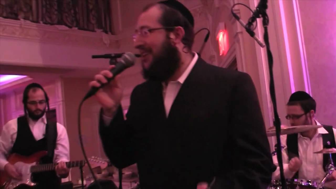 Shragy Gestetner sings at a Bar Mitzvah with the Freilach Band