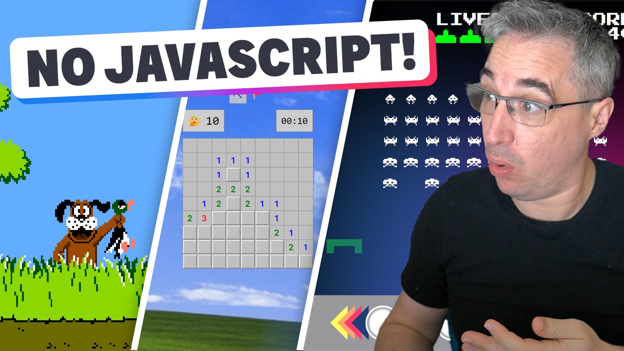 It's been a little while since I've looked at other people's amazing CSS-only creations, and this time we're looking at amazing CSS-only games! From classics like Space Invaders to full-on adventure games and even a fully-functional 3D Connect Four and a bunch more. 🔗 Links ✅ The page with the full list of games: https://freefrontend.com/css-games/ ✅ Amit’s Maze: https://codepen.io/amit_sheen/pen/ExMgKpa ✅ Amit’s YouTube channel: https://www.youtube.com/@CSScapism ✅ Ben Evan’s YouTube channel: https://www.youtube.com/@ivorjetski ⌚ Timestamps 00:00 - Introduction 00:36 - Connect Four by Jhey 01:34 - CSS-only puzzle by Temani Afif 02:31 - Minesweeper by Samridhi 04:07 - Space Invaders by Jon Slater 05:56 - Duck Hunt by Hai Le 07:00 - The Caretaker - Pure CSS horror/puzzle game by Jamie Coulter 10:05 - Build a lighthouse by Ben Evans 11:42 - Rock Paper Scissors by Alvaro Montoro 13:08 - The Mine: CSS-only adventure game by Jamie Coulter 15:29 - Pure CSS Carnival Game by Una Kravets 16:30 - CSS Maze by Amit Sheen #css -- Come hang out with other dev's in my Discord Community 💬 https://discord.gg/nTYCvrK Keep up to date with everything I'm up to ✉ https://www.kevinpowell.co/newsletter Come hang out with me live every Monday on Twitch! 📺 https://www.twitch.tv/kevinpowellcss --- Help support my channel 👨🎓 Get a course: https://www.kevinpowell.co/courses 👕 Buy a shirt: https://teespring.com/stores/making-the-internet-awesome 💖 Support me on Patreon: https://www.patreon.com/kevinpowell --- My editor: VS Code - https://code.visualstudio.com/ --- I'm on some other places on the internet too! If you'd like a behind the scenes and previews of what's coming up on my YouTube channel, make sure to follow me on Instagram and Twitter. Twitter: https://twitter.com/KevinJPowell Codepen: https://codepen.io/kevinpowell/ Github: https://github.com/kevin-powell --- And whatever you do, don't forget to keep on making your corner of the internet just a little bit more awesome!