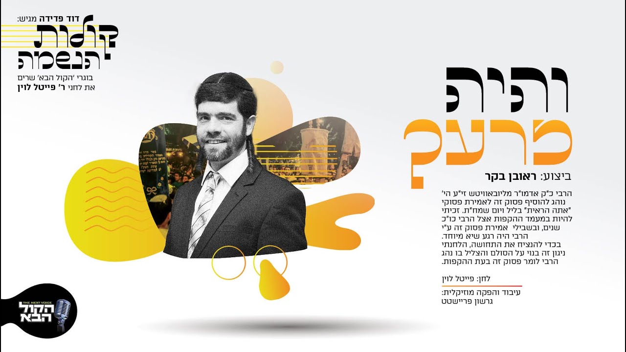 הפקה: FDD Production LTD טל: 03-6165628 מייל: info@fdd.co.il הזמר ראובן בקר משחרר סינגל חדש בשם 'והיה זרעך' מתוך אלבום 'קולות הנשמה'. הפרויקט המיוחד מלחני ר' פייטל לוין שמבוצע כולו על ידי בוגרי 'הקול הבא', ובהפקתו של דוד פדידה. את השיר הלחין ר' פייטל לוין ועל העיבוד המוסיקלי אחראי גרשון פריישטט. מיטב זמרי התכנית משתי העונות הראשונות נוטלים חלק באלבום. ר' פייטל מספר: "הרבי כ"ק אדמו"ר מליובאוויטש זי"ע הי' נוהג להוסיף פסוק זה לאמירת פסוקי "אתה הראית" בליל ויום שמח"ת. זכיתי להיות במעמד ההקפות אצל הרבי כו"כ שנים, ובשבילי אמירת פסוק זה ע"י הרבי היה רגע שיא מיוחד. בכדי להנציח את התחושה, הלחנתי ניגון זה בנוי על הסולם והצליל בו נהג הרבי לומר פסוק זה בעת ההקפות." ---------------------------- מילים: מן המקורות לחן: ר' פייטל לוין הפקה מוזיקלית: גרשון פריישטט קלידים ופסנתר: גרשון פריישטט תופים: אבי אבידני בס: אלון הלל גיטרות: אבי סינגולדה חצוצרה: דובי אקשטיין טרומבון: ירון הרינג סקספון וחליל: דור אסרף עיצוב גרפי: GILIZI הנפשה: מוריה לוין הקלטת שירה: FDD Studio 2020 מיקס ומאסטרינג: ישרו פריישטט הפקה: FDD פרודקשיין בע"מ הפצה דיגיטלית: Mobile1 Music #והיה_זרעך #ראובן_בקר #הקול_הבא