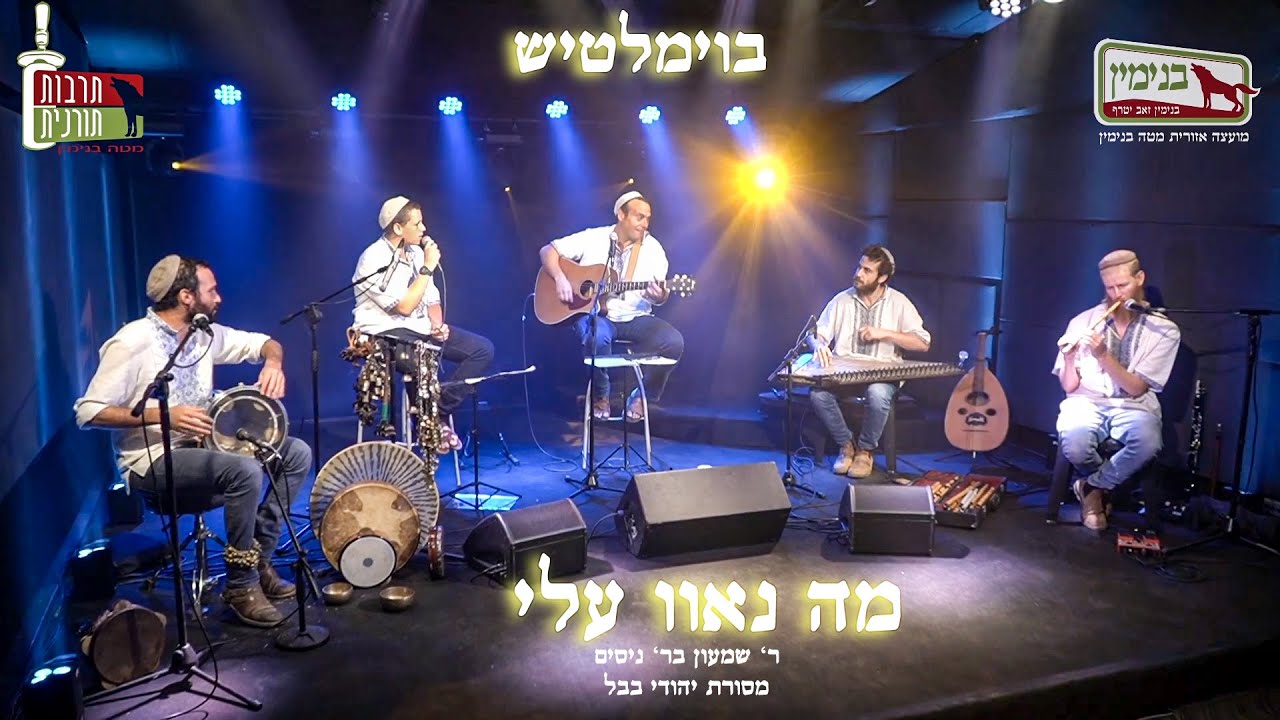 ביצוע מיוחד של הבוימלטיש לפיוט מה נאוו עלי תודה רבה לנגנים הנפלאים: גל חבר - קאנון יוני שרון - כלי הקשה חנני זית - כלי נשיפה מלאכי יצהר -שירה מרדכי יצהר גיטרה ושירה תודה רבה לדניאל אלוני סאונד תאורה הקלטה ועריכת ווידיאו עשית עבודה מעולה ! תודה לקובי נתן עיצוב תמונה תודה למועצת בנימין ולטליה רכזת תרבות תורנית על ההפקה היפה הזו! תבורכו כולכם בכל הברכות