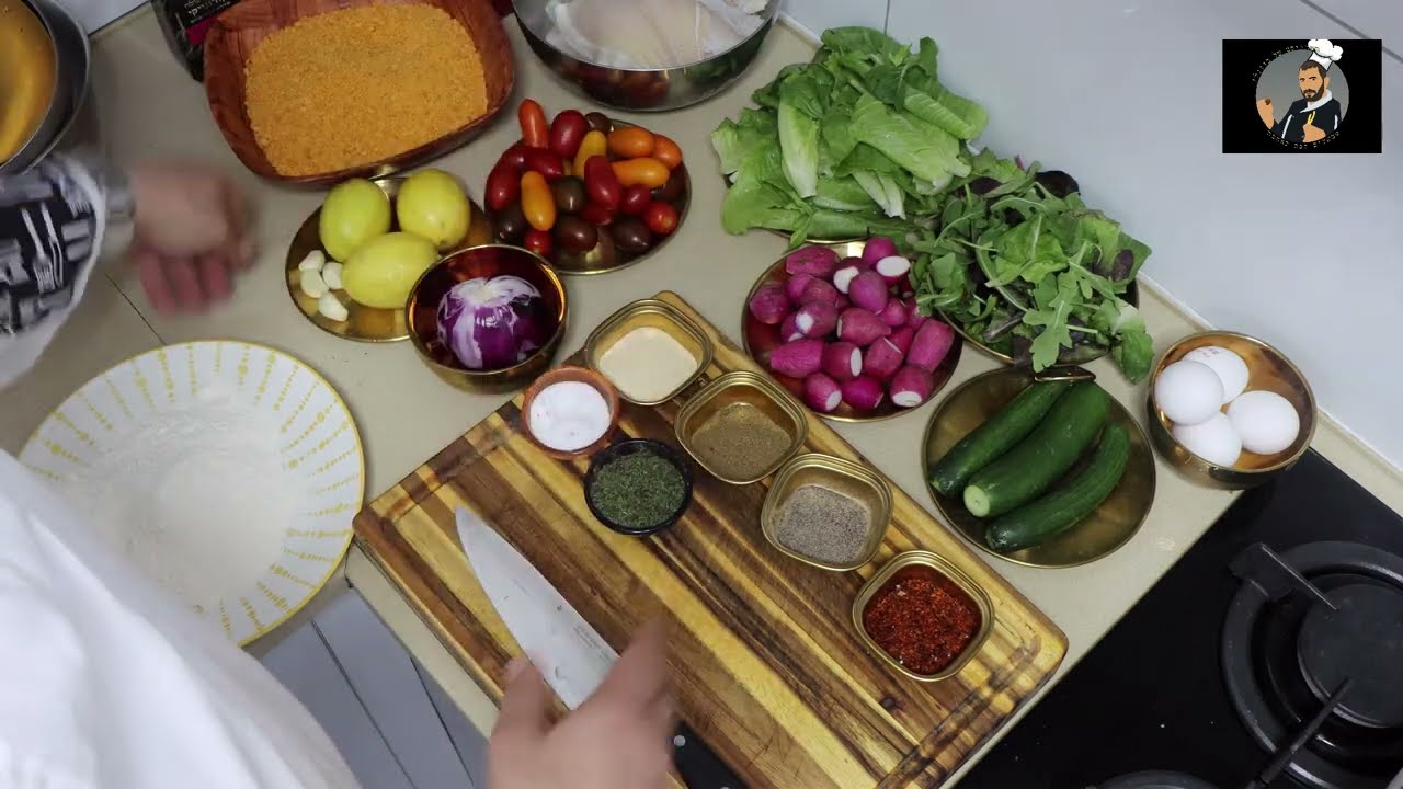 דג סול מטוגן בציפוי פריך בתוספת סלט ירקות עשיר
