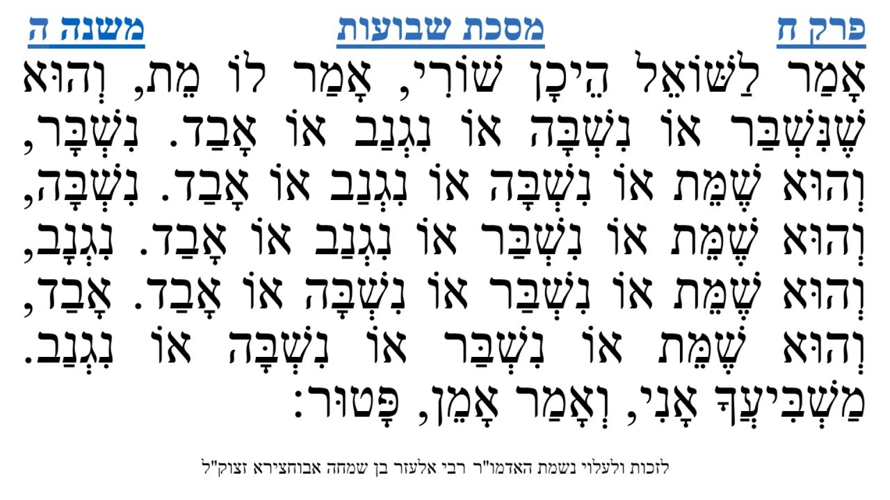 צפייה ישירה ב-YouTubeמסכת שבועות פרק ח משנה ה