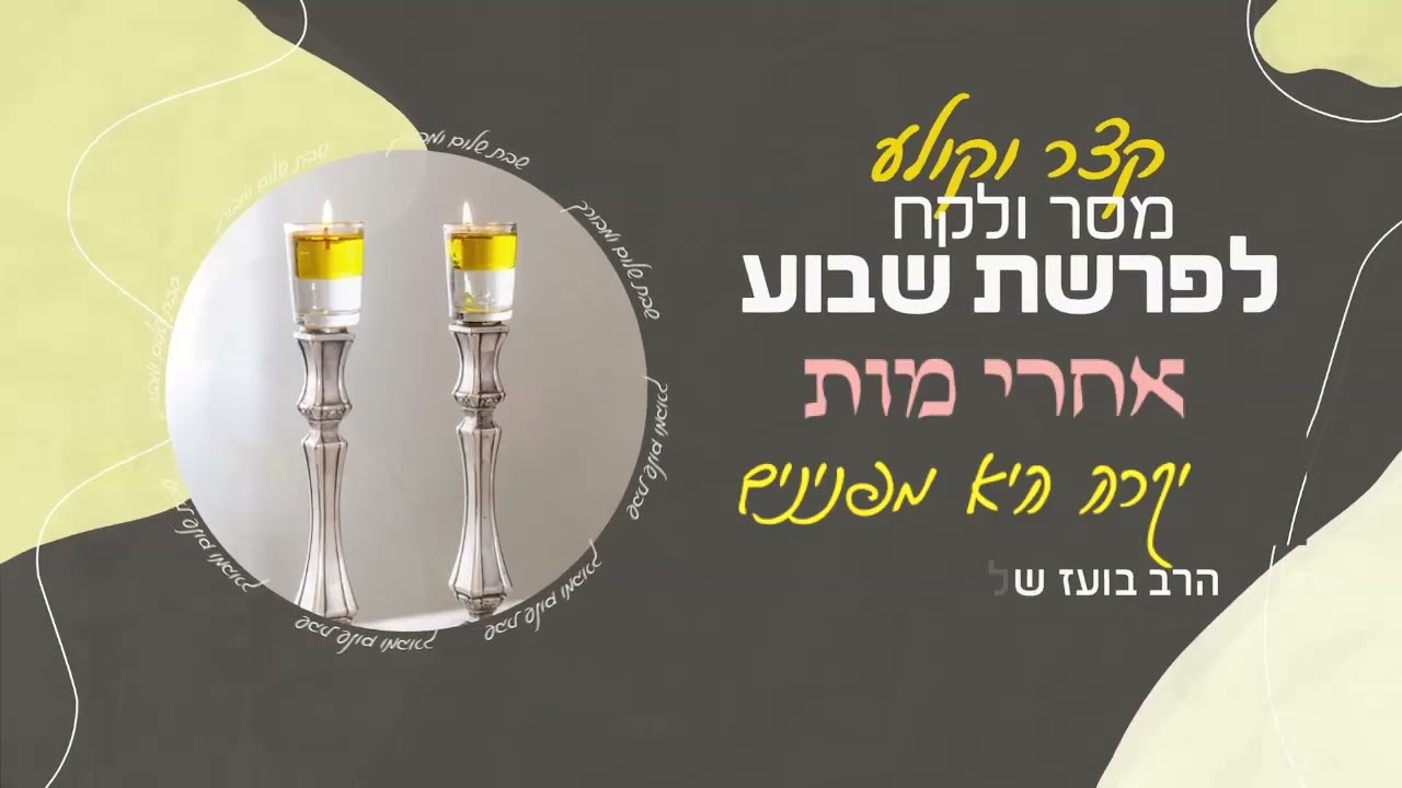 הרב בועז שלום - פרשת אחרי מות קדושים - יקרה היא מפנינים (תשפ"ה)