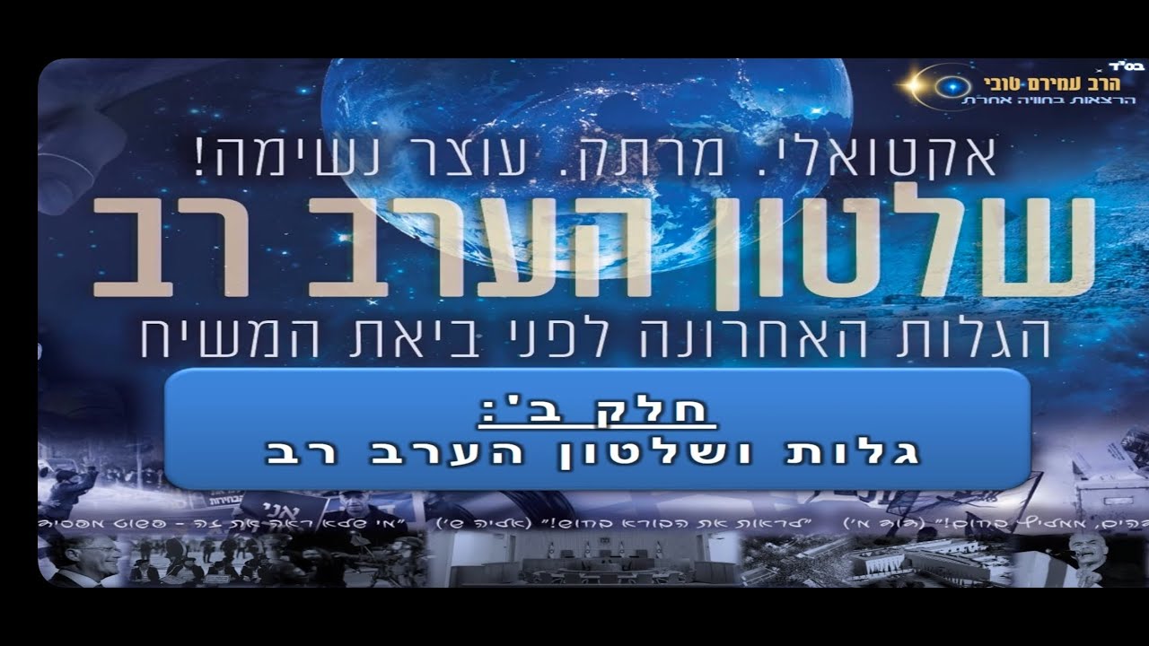 קשה שלא להבחין באחת התופעות המעניינות בדורנו רווי המחלוקות. מחד, השתוקקות עם ישראל לשוב לצור מחצבתו ומאידך רמיסת התורה והדת על ידי פושעי ישראל, כאילו היינו שני עמים נפרדים שנראים כאחים אך שונאים זה את זה. מדוע זה קורה? והאם אכן אחים אנחנו? מדוע ישנם ארגונים הדואגים לערבים בעזה, ואלו לציבור היראים יש שנאת משטמה תהומית כאילו היו האויבים הגדולים ביותר של האנושות? גזירת הגיוס והמעונות, שלטון הבג"ץ, אלימות השוטרים, אנטישמיות כלפי הציבור החרדי, מאיסת ההתנחלויות, הפיצול בין הימין לשמאל, בין התורה לבין הכפירה... כל זאת ועוד במצגת אינטרנט מרתקת מחלוקת לשלושה חלקים, מפורטת לפרטי פרטים לפי תורת הרמז, הדרש והסוד, המראה לכולנו מה השורש של אותם נשמות, דרך השתלשלותם בעולמנו עד לדורנו אנו והבירור לעתיד לבוא בימות המשיח. שלטון הערב רב- הגלות האחרונה לפני ביאת המשיח! צפו ושתפו לזיכוי הרבים! *כדי למנוע אריכות, מי שיש לו תפיסה מהירה, מומלץ שינגן את הסרטון במהירות של x1.5 עד x2 -‐----------------‐---------------‐----------------‐----------------‐------------- הרב עמירם טובי, מרצה בארגון "הידברות", בעל ניסיון עשיר של מעל 10 שנים, ומפעיל את הקונספט של "הרצאות בחוויה אחרת", נותן לכם להרגיש את ההבדל בין הרצאה לחוויה אמיתית, ומביא עד אליכם את הדבר הבא בעולם ההרצאות! הרצאות מגוונות, מותאמות לכל סוגי הציבור, בליווי מצגת וסאונד, שירתקו אתכם ולהשאיר אתכם עם טעם של עוד! ☆ תוכן נדיר, אקטואלי ומרתק! ☆ קונספט עשיר ברוחניות לנשמה! ☆ הומור מטורף! ☆ המוווווון אנרגיה ואווירה חיובית! ☆ המחשה ויזואלית באיכות גבוהה בטכנולוגיית AI! ☆ חוויית סאונד סוחפת! ☆☆☆ פשוט "הרצאות בחוויה אחרת"! ☆☆☆ הצטרפו גם אתם לחוויה המרתקת יחד עם עשרות האלפים שכבר נחשפו לדבר הבא בעולם ההרצאות! מההרצאות שלנו: סאגת הצופן: ☆ סוד הצופן התנכ"י: כשהעבר ההווה והעתיד נפגשים ☆ עולם הרמז וצפונות התורה ☆ "וכמו השחר עלה": מאורעות ה7 באוקטובר בנבואות התנ"ך סאגת אחרית הימים: ☆ "אתחלתא דגאולה": סימנים שאנחנו פסיעה לפני ביאת המשיח ☆ מחושך לאור: סוף גלות ישמעאל ☆ שלטון הערב רב ☆ מלחמת העולם השלישית ---‐----------------‐---------------‐----------------‐----------------‐------------- להזמנות: ☆ 053-315-6363 (כשר) ☆ 054-9303571 (sms) ☆ 054-5620851 (WhatsApp) ☆ Otubon1@gmail.com חפשו אותנו גם באתר: Www.amiram-tubi.co.il