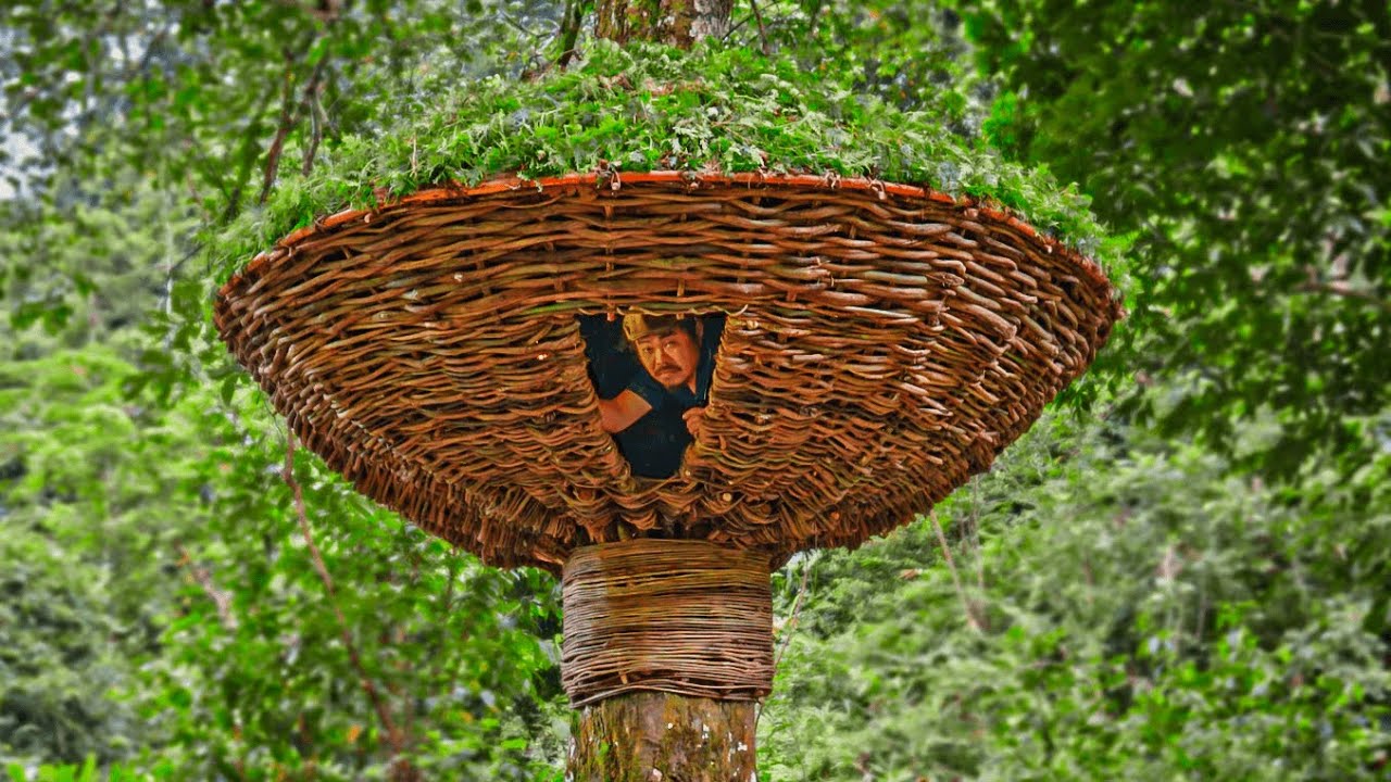 Forget bird nests, this time I built a massive FLYING SAUCER (UFO) shelter high up in the trees using only bushcraft skills... Deep in the untamed jungle, I decided to build a shelter that looks "out of this world." Resembling a giant UFO (Flying Saucer) hovering in the trees, this unique treehouse was crafted entirely using primitive bushcraft skills and natural materials. In this episode, you will see the full process: Harvesting vines and wood from the forest. Weaving the massive "saucer" structure by hand. Creating a safe, waterproof living space high above the ground. Cooking and spending the night in my "Alien Base." It may look like a spaceship, but it is 100% organic. I hope this video inspires you to get outside and build something amazing! #bushcraft #survival #UFO #treehouse #offgrid #camping #flyingsaucer #shelter #primitivetechnology #jungle #forest #building #diy #woodworking