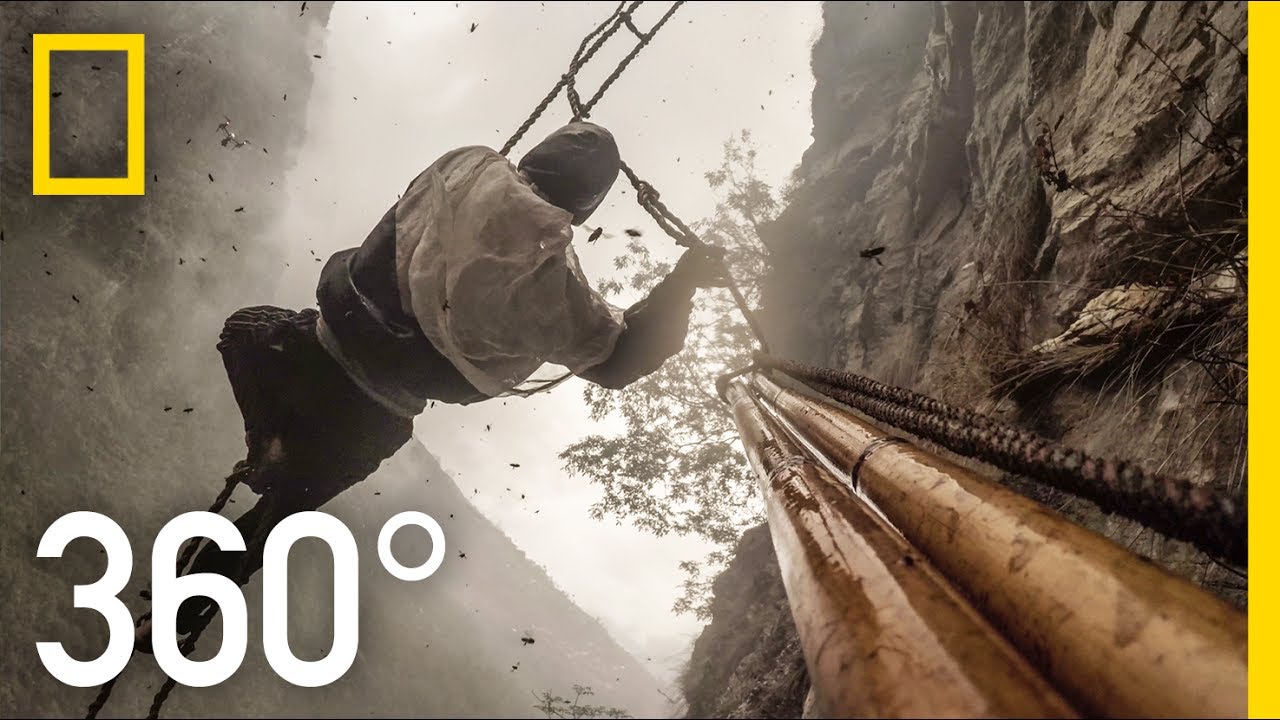 Hang beside National Geographic Photographer, Renan Ozturk as he dangles off remote Nepal cliffs to document 'The Last Honey Hunter' magazine story. Renan and team are tracking Mauli, the last hunter in his village who pursues a hallucinogenic ‘red’ honey, known in equal measure for its medicinal properties and its value on the black markets across Asia. Without any protective equipment, Mauli will spend all day suspended hundreds of feet above the ground from hand made bamboo rope while engulfed in a swarm of angry bees. As roads and technology change the landscape of such wild places across the globe, these ancient traditions are under threat, making this story important to document the traditions are lost. Follow along like never before on this high stakes adventure! ➡ Subscribe: http://bit.ly/NatGeoSubscribe ➡ Get More Explorer: https://on.natgeo.com/2kjK3ZO About National Geographic: National Geographic is the world's premium destination for science, exploration, and adventure. Through their world-class scientists, photographers, journalists, and filmmakers, Nat Geo gets you closer to the stories that matter and past the edge of what's possible. Get More National Geographic: Official Site: http://bit.ly/NatGeoOfficialSite Facebook: http://bit.ly/FBNatGeo Twitter: http://bit.ly/NatGeoTwitter Instagram: http://bit.ly/NatGeoInsta 360° Dangerous Honey Hunting (4K) | Explorer | National Geographic https://youtu.be/esGz-HrB-Js National Geographic https://www.youtube.com/natgeo