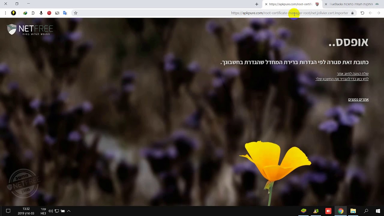 בסרטון זה נראה כיצד ניתן לקבל הרשאות root לאמולטור bluestacks, לצורך התקנת תעודת אבטחה (certificate) ב-system. הסרטון מבוסס על ההדרכה הזו: https://netfree.link/wiki/%D7%94%D7%AA%D7%A7%D7%A0%D7%AA_%D7%AA%D7%A2%D7%95%D7%93%D7%94_%D7%91%D7%AA%D7%95%D7%9B%D7%A0%D7%AA_BlueStacks הורדת קבצי תוכנת bstweaker מכאן: https://bstweaker.tk/ הורדת אפליקציית Root Certificate Manager מכאן: https://apkpure.com/root-certificate-manager-root/net.jolivier.cert.Importer/download?from=details