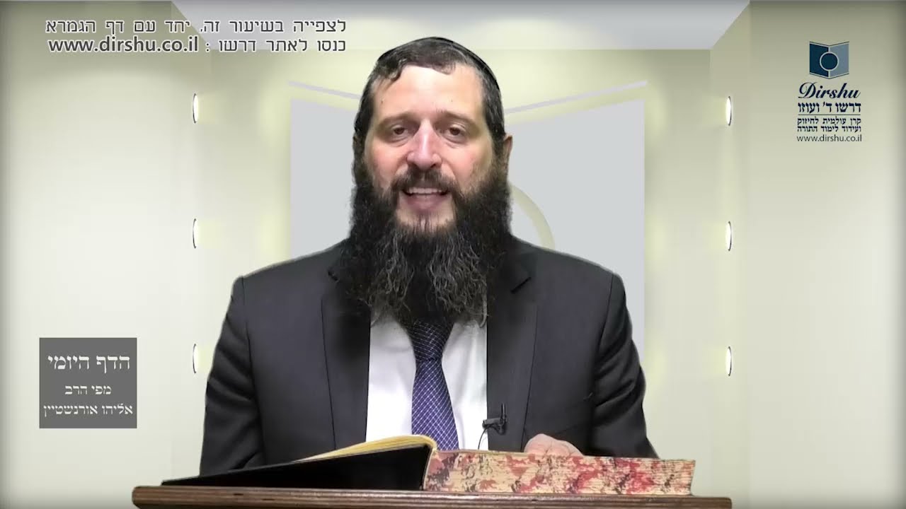 דף היומי - שיעורי הדף היומי בגמרא תלמוד בבלי מסכת ביצה מבית "דרשו" עם הרב אליהו אורנשטיין שליט"א, הדף יומי קצר וישיבתי לשיעורים נוספים באתר דרשו: http://www.dirshu.co.il/