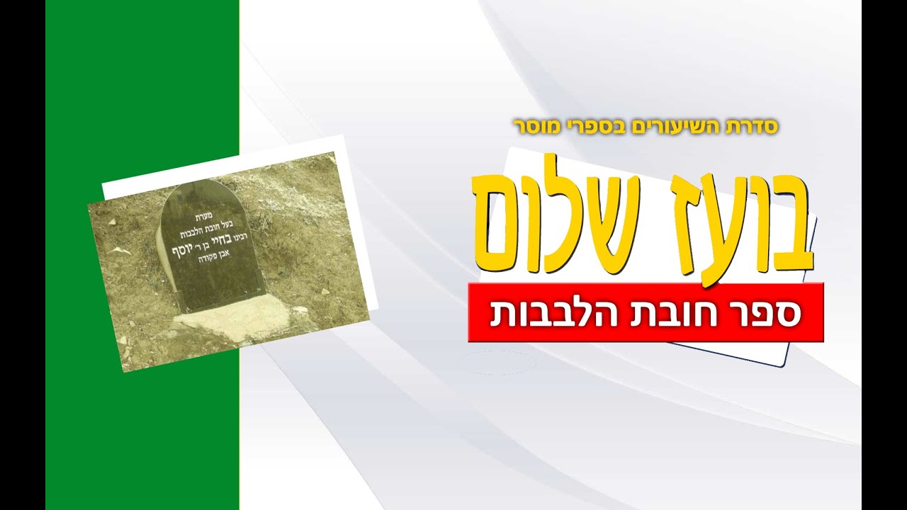לכל השיעורים בספר חובת הלבבות - לחץ כאן - https://taamu.co.il/%d7%97%d7%95%d7%91%d7%95%d7%aa-%d7%94%d7%9c%d7%91%d7%91%d7%95%d7%aa-%d7%97%d7%9c%d7%a7-%d7%a8%d7%90%d7%a9%d7%95%d7%9f/ הרב בועז שלום שליט"א הוציא בשנים האחרונות אלפי שיעורי תורה במגוון נושאים. שיעורים מעמיקים בשולחן ערוך, משנה, תלמוד בבלי, בתנ"ך , מחשבה, מוסר, הלכה, אגדה, עין יעקב, פרשת שבוע, ועוד. הרב מכהן כרב בית הכנסת 'בית אליהו' בבני ברק. במסגרת זו הקים הרב את מדרשת 'בית אליהו'. במשך שנים עסק הרב במסירת הרצאות ובקירוב רחוקים בארגון 'ערכים' כיום מוסר הרב הרצאות בערוץ הידברות במגוון נושאים. כמו כן מוסר הרב שיעורים קבועים במדרשת 'פסגות' שברחוב בן ציון גליס 37 אזוה"ת סגולה בפ"ת. הרב בועז שלום חיבר שני ספרים 'משנת החלומות' ו'משנת הגלגולים'. לרב בועז שלום אתר אינטרנט בשם "טעמו וראו" שם תוכלו למצוא את כל שיעוריו בכתובת https://taamu.co.il את השיעורים ניתן לשמיעה ואף להורדה ----- https://taamu.co.il זכות הלימוד לעילוי נשמת אברהם בן ימנה ויעקב