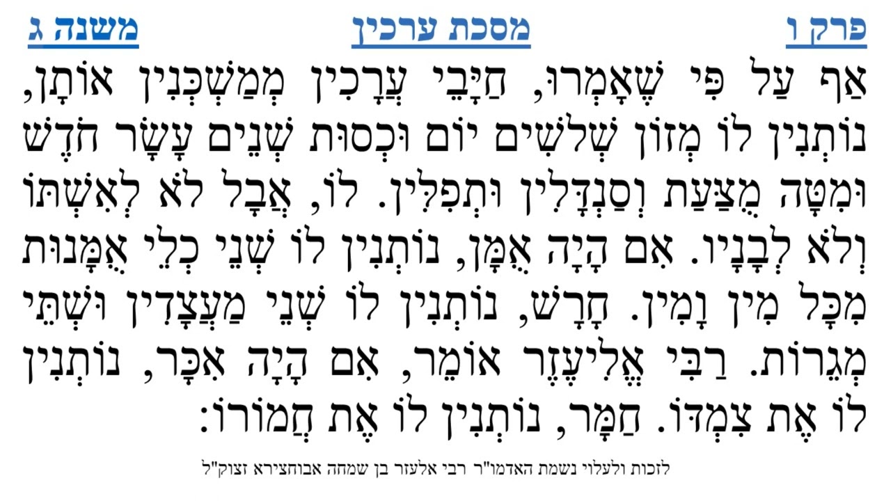 צפייה ישירה ב-YouTubeמסכת ערכין פרק ו משנה ג
