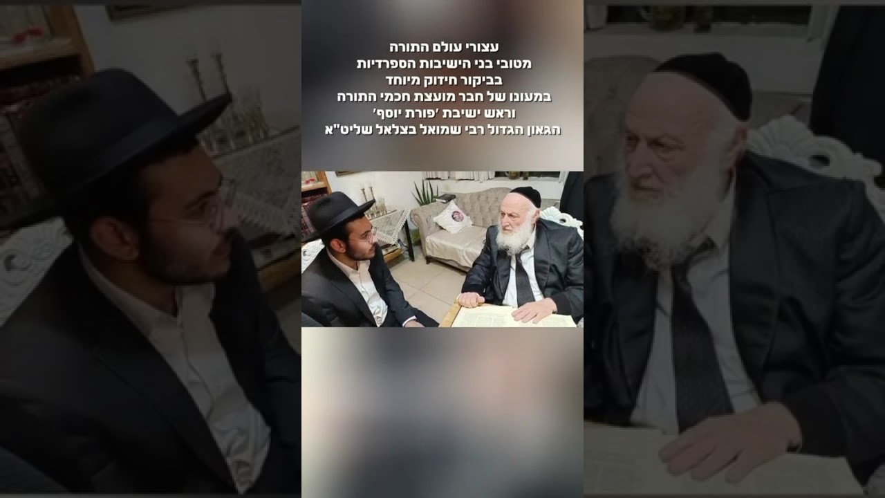 למען הרמת קרן התורה ולרומם כבוד לומדיה בטהרה: הגאון הגדול רבי שמואל בצלאל שליט”א, ר"י פורת יוסף וחבר מועצת חכמי התורה קיבל במעונו את הבחור החשוב נ.ש. עצור עולם התורה, מחשובי תלמידי ישיבת ׳אמרי משה׳ בבני ברק בראשות הגאון רבי אמנון סבאג שליט״א, הבחור נעצר ע״י המשטרה הצבאית ושוחרר אך לאחר מאמצים מרובים בעת לאחרונה. ראש הישיבה השמיע דברי חיזוק וטללי עידוד ונוחם שרוממו את רוחו וביקש להעביר מסר ברור וחד הן לכל הבחורים שנעצרים על לא עוול בכפם ואך ורק עקב היותם ׳בני תורה׳ והן לכל האברכים ובני הישיבות הממלאים את היכלי התורה. להלן הדברים: אני מברך כל ראשי הישיבות והבחורים שיושבים ועוסקים בתורה, כל המקבל עליו עול מלכות שמיים, מעבירין ממנו עול מלכות הארץ ושלטון וצבא הכל נדחק בשמיים עושים, אבל לקבל ברצינות שאני רוצה לשבת ללמוד ולהיות עבד ה' אני יודע שזה מנוסה ומצליח, זה לא סתם מילים, כל המקבל עליו עול תורה מעבירין ממנו עול מלכות ועול דרך ארץ. והוסיף לחזק את הבחור: בעזרת השם שתזכה להיות גדול בישראל תלך בכוחך זה, ואתה רואה שהקב"ה גם נתן לך סיעתא דשמיא לעמוד כנגד כל אלה. *נהנתם מהסרטון? תנו לייק והרשמו כמנוי ותתנו לנו את הכוח להמשיך................* צופים יקרים: הקליקו "הירשם כמנוי" ואחר כך לחצו על הפעמון, ואז תהיו המעודכנים הראשונים בכל סרטון חדש שעולה ליוטיוב ! נו, לא כדאי להירשם ? *יש לכם תיעוד וידאו מעולם התורה לפרסום? שלחו אלינו מייל 6701822@gmail.com* *המערכת מכבדת זכויות יוצרים* *התיעודים המתפרסמים בערוץ זה הם ע"פ תורתינו הקדושה, ולהבדיל ע"פ חוקותיהם, חוק זכויות יוצרים תשס"ח 2007 למנינם, סעיף 27א, במידה ובעל המוצר חפץ שנפסיק להשתמש במוצר, או שנייחס הסרטון אליו שלחו לנו מייל לכתובת: 6701822@GMAIL.COM והעניין יטופל.* ********************************************** שימו לב על כל פרסום סרטון שהתפרסם בערוץ זה חובה לציין קרדיט ל'ערוץ בקודש פנימה'.