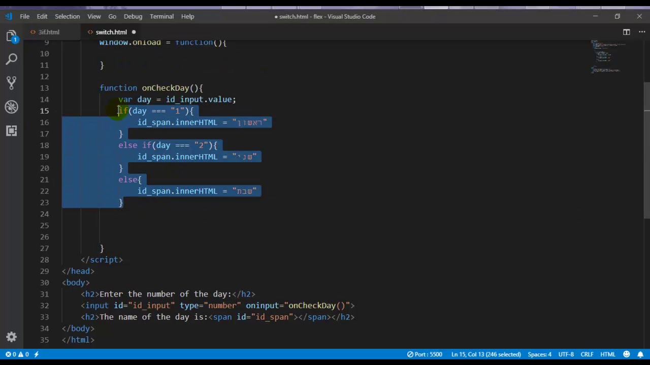 קורס JS - חלק 20, משפטי תנאי TERNARY IF ו SWITCH