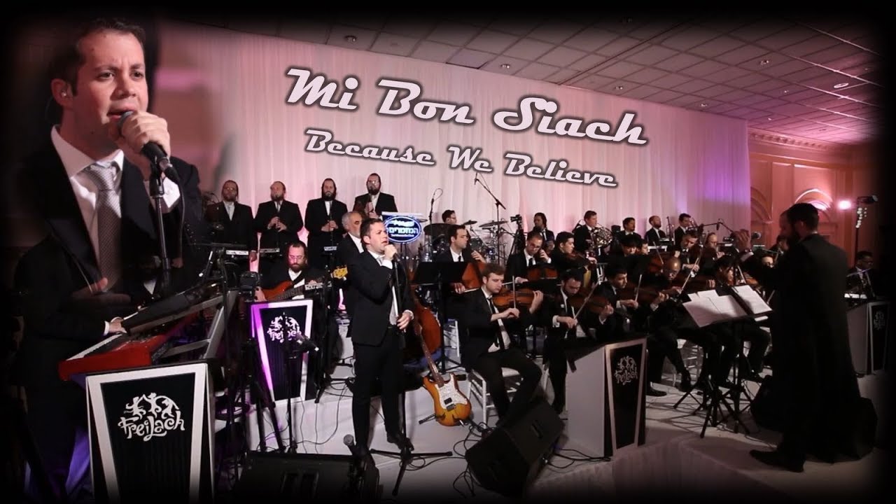 Next up in the Freilach Band Chuppah Series, where we bring you high-quality videos from some of the magnificent Chuppahs at which Freilach Band performs, watch Simcha Leiner perform ‘Mi Bon Siach’ at a recent wedding in Ateres Avrohom with a massive 27-piece orchestra by Freilach Band. The concept of this production was the brainchild of our own Nachman Dreyer who also made this masterful “Because We Believe” — originally by Andrea Bocelli — into a breathtaking Chuppah reality. Watch, enjoy and don't forget to subscribe so you never miss a Freilach video! Video Credits: Composers: Andrea Bocelli, A, Foster-Gillies, David Foster Copyright: (C) 2006 Sugar Srl, under exclusive license to Universal Music B.V. Originally Performed by: Andrea Bocelli Original Song Title: Because We Believe Music by: Freilach Band/Avrumi Schreiber Backup Vocals: Mezamrim Choir Notated and Conducted by: Tzvi Blumenfeld Post production, mixed and mastered: V-Gold Beat Production Live Sound by: SolveTech Live Sound Engineer: Shy Clyman Live production by: JME Live Stage Manager: Moti Friedman Video by: Motty Engel Public Relations: Sruly Meyer Press: The Hashtag Group/Pinny Blumenfeld Follow us on social media for the latest Freilach updates: Facebook - https://www.facebook.com/freilachband Twitter - https://twitter.com/TheFreilachBand Instagram - https://www.instagram.com/freilach YouTube - https://www.youtube.com/freilachmusic To have Freilach Band enhance your event or Simcha: 212-234-2779 Mail@BeFreilach.com © Copyright 2018 by Freilach Band - All rights reserved.