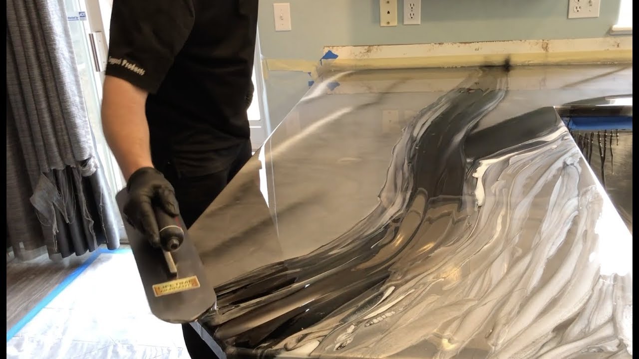 From beginning to end! Tylor completely remodels his mother-in-laws kitchen resurfacing a 5 year old metallic epoxy countertop. See what happens and how it turns out right here!