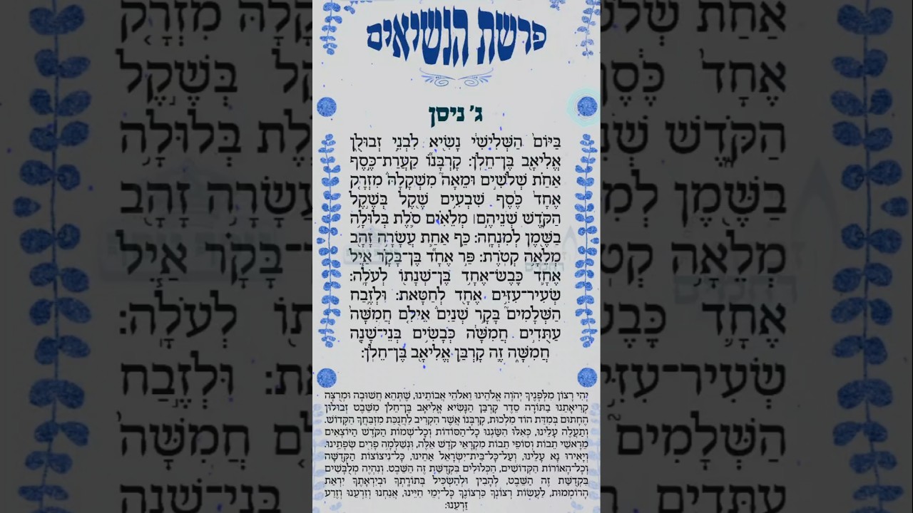 פרשת הנשיאים ליום ג' בניסן (01/04) - קריאה קצרה של דקות בודדות חבל לפספס💛 הפיצו🔥