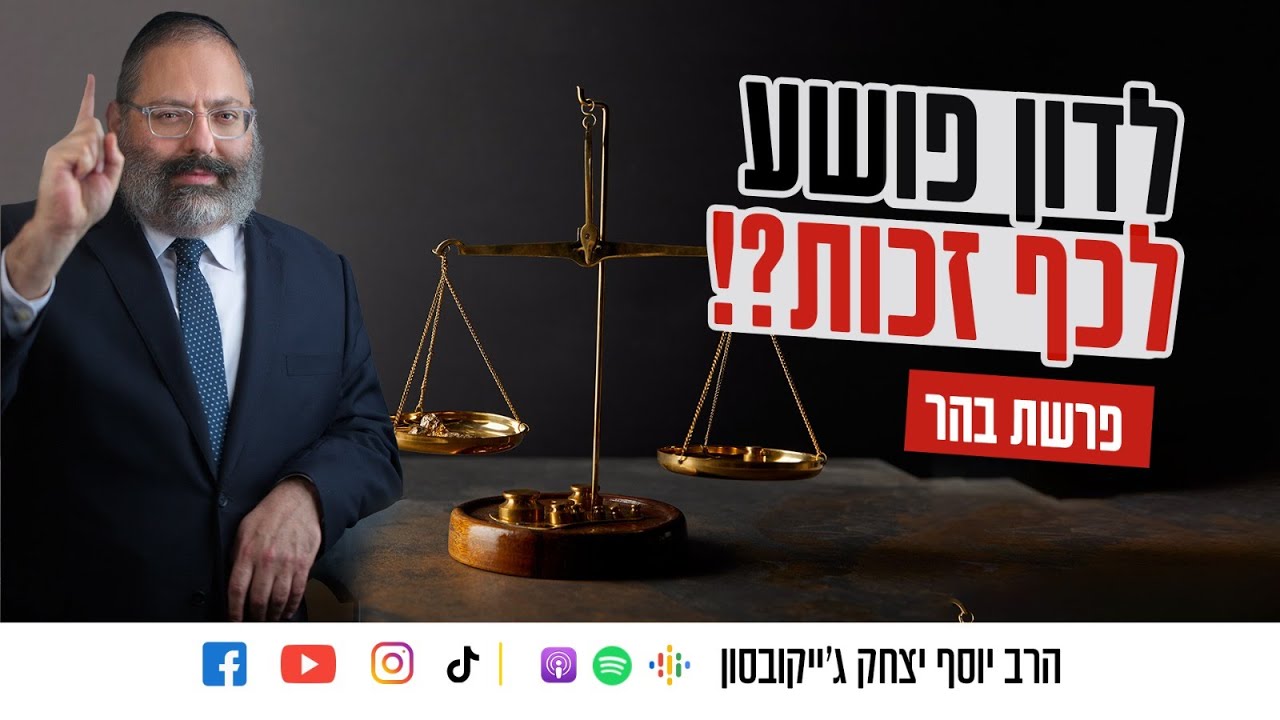 הצטרפו לקבוצת הוואטסאפ השקטה של שיעורי הרב: https://chat.whatsapp.com/BafeUZXr7w7F5076DNTYVv חזקת החפות היא אחד מיסודות המשפט. היא קובעת כי אדם שעומד לדין הוא בגדר זכאי כל עוד לא הוכחה אשמתו. כבר לפני אלפי שנים הורו חכמינו: "הוי דן את כל האדם לכף זכות". אך כיצד עלינו לנהוג במקרה בו אנו בטוחים מעל לכל ספק כי האדם שמולנו שקרן וגנב שרוצה להתחמק מלשלם את מה שהוא חייב? מדוע עלינו להאמין לדבריו של האיש ולא לסמוך על הזיכרון וההיגיון שלנו? הרב יוסף יצחק ג'ייקובסון בשיעור מיוחד לפרשת בהר עם סיפור היסטורי מרתק על מאבק אמינות של יהודי חסר אמצעים מול רב, תלמיד-חכם ועשיר גדול, במסע של אכזבה, השפלה וכאב עד הסוף המפתיע והמאלף. רוצים לקבל עדכון כשהשיעור השבועי עולה? הירשמו כמנוי! • להרשמה לערוץ של הרב ג'ייקובסון ביוטיוב ◄https://shorturl.at/nERU1 • הרב בטוויטר ◄ https://twitter.com/RabbiYYJacobson • מוזמנים לעקוב גם בפייסבוק ◄ https://facebook.com/RYYJacobson • באינסטגרם ◄ https://www.instagram.com/rabbi.jacobson • בטיקטוק ◄ https://www.tiktok.com/@rabbi_jacobson • לאתר האינטרנט ◄ https://lilmod.net ניתן להאזין לשיעור גם באפליקציות הפודקאסטים • אפל ◄ https://podcasts.apple.com/podcast/id1606711932?mt=2&app=podcast&ls=1 • ספוטיפיי ◄ https://open.spotify.com/show/33Ya3zsURYhdwkiWRpohkb • גוגל פודקאסט ◄ https://podcasts.google.com/feed/aHR0cHM6Ly9ybmFjaG1hbnNvbi5jYXB0aXZhdGUuZm0vcnNzZmVlZA #פרשת_בהר #הרב_גייקובסון #חזקת_החפות