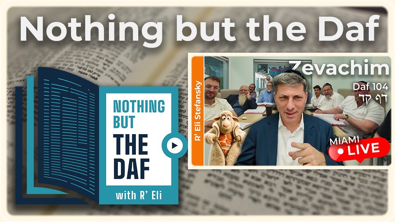 00:00 - Good Voch 00:09 - 103B 06:19 - 104A 20:13 - 104B 30:53 - Have a Wonderful Day! Quiz - http://Kahoot.MDYdaf.com -- To receive the "Nothing but the Daf" Chazarah Shiur daily via WhatsApp: https://chat.whatsapp.com/G6KFNRIIXUBKCpeX0AXW0m MDY presents: "Nothing but the Daf", R’ Eli Stefansky’s MDY (Mercaz Daf Yomi) Shiur in a concise format - all the clarity of the full daf Shiur, with Reb Eli's unique charts and visual aids, without any extras (emails, stories etc.) Perfect for Chazarah or anyone who wants a quick, focused Daf. -- Thank You For Learning The Daf Yomi Today With Us! Please consider Sponsoring our Shiur! http://MDYsponsor.com/ _________________________________ Learn the Daf Yomi on all the top streaming platforms: Full Daf: 👇Watch us on all the big video Platforms👇 YouTube - https://www.youtube.com/@MercazDafYomi AllDaf - http://alldaf.mdydaf.com Torahanytime - http://tat.mdydaf.com Batorah - http://batorah.com/speakers/1013 👇Listen to us on all the big Podcast platforms with the link below👇 https://mercazdafyomi.com/links 👇Download and Listen to us on the go👇 Torahanytime - http://tat.mdydaf.com Spotify - https://podcast.mdydaf.com Telegram - http://tf.mdydaf.com Batorah - http://batorah.com/speakers/1013 _________________________________ https://X.com/MercazDafYomi Have a Wonderful Day! Edited by Ariel Leiba #Geshmak_to_do_the_Daf #Zevachim #EliStefansky #mdy #dafyomi
