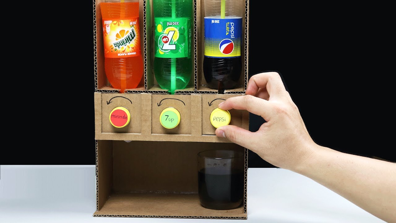 How to Make Pepsi 7Up Mirinda Dispenser at home from cardboard. It's really simple and easy to make it. In this video show you how to make this Dispenser with 3 different drinks. I hope everyone like it. Thank you for watching!! Please subscribe to get more interesting videos: https://www.youtube.com/channel/UCNZMEiM-ZMYmEk2CG3mr1_Q?sub_confirmation=1 For this project you need: - Cardboard - Plastic bottles - Plastic tube - Drinking Straws - Hot glue gun Cardboard Measurement: ==================== (cm = centimeter) 0,5cm x 6cm = 6 pieces 1cm x 21cm = 1 piece 3cm x 23cm = 1 piece 6cm x 7cm = 3 pieces 6cm x 12,5cm = 2 pieces 7cm x 18cm = 4 pieces 7cm x 22cm = 1 piece 7cm x 23cm = 1 piece 12cm x 23cm = 1 piece 13cm x 18cm = 2 pieces 15cm x 23cm = 1 piece 18cm x 22cm = 1 piece 18cm x 23cm = 1 piece More videos ========== Vending Machine by Chocolate Coin - DIY : https://www.youtube.com/watch?v=nTYGh5jMgVA Wow! DIY KitKat Chocolate Vending Machine : https://www.youtube.com/watch?v=gifHG72DyrQ How to Make RC GARBAGE TRUCK - Amazing Truck : https://www.youtube.com/watch?v=PGgejQ9AK2E&t=976s How to Make a Coffee Machine with Credit Card : https://www.youtube.com/watch?v=HCeeN7YbC44&t=190s