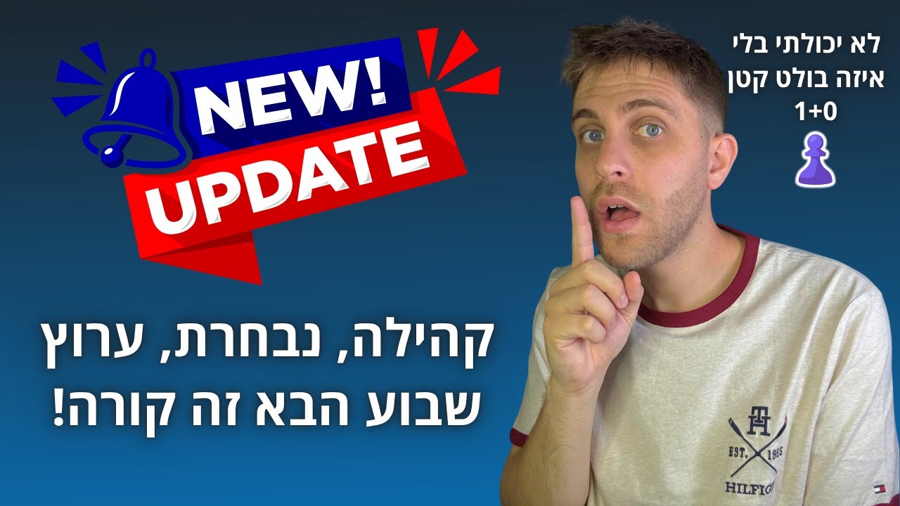 עדכונים חשובים בסרטון הזה! נבחרות ישראל גברים ונשים מתחילות את דרכן ביום ראשן הקרוב באליפות אירופה לנבחרות בגיאורגיה, שיהיה המון בהצלחה לכולם, אנחנו איתכם! אירועי שבוע הבא... קהילה חדשה בצס קום. ואי אפשר בלי 2 בולטים לסופש נעים. הצטרפו למועדון השחמט שלנו ב- https://www.chess.com/club/nytsqv-shkhmt 🎓 לימוד שחמט בכיף לילדים: 🔹https://www.chessworld.io/ 🔹אייפון: https://apps.apple.com/us/app/chessworld-chess-for-kids/id1112656776 🔹אנדרואיד: https://play.google.com/store/apps/details?id=com.altermanchess.AltermanChessEdu 🎁 קוד קופון בלעדי: קבלו 20% הנחה על רכישת מנוי מתקדם באפליקציה הקוד: nitzan2025 ,בתוקף עד ה־30.9 הירשמו בחינם לאתר שידהים אותכם! באמצעותו תוכלו ללמוד פתיחות, לשנן וריאנטים, לשפר את הזיכרון ולהשתפר בשחמט ופשוט לנצח. https://www.chessshare.com/# ♟️ הירשמו ל-Outpost – הבית החדש לשחקני שחמט: https://outpostchess.com/?utm_source=YouTube&utm_medium=Nitzan אימייל לשליחת משחקים עבור נחש את מד הכושר ונחש את הערכת העמדה! nitzan.steinberg18@gmail.com 🎯 הצטרפו עכשיו לקבוצת הליצ'ס של הקהילה! 🏆 תחרויות, פרסים, ועוד הפתעות! 🔗 https://lichess.org/team/DR3Y5DS6 | סיסמה: 2025! 💙 נהנים מהתכנים שלי? אפשר לתמוך כאן: https://www.paypal.me/NitzanSteinbergChess 📱 הרשתות החברתיות שלי: 🔹 אינסטגרם: https://www.instagram.com/nitzan_steinberg_/ 🔹 טוויץ': https://www.twitch.tv/nitzansteinbergchess 🔹 פייסבוק: https://www.facebook.com/nitzan.steinberg 🔹 דיסקורד: https://discord.com/invite/t8Anrz5VpM 🔹טוויטר: https://twitter.com/SteinbergNitza1 🔹ערוץ יוטיוב באנגלית: https://www.youtube.com/@UCOPwWRP_SvWb7r6pnfs41Ww 🔹לינקדין: https://www.linkedin.com/in/nitzan-steinberg-a62112217/ 🔹טיקטוק: https://www.tiktok.com/@nitzansteinberg18 💬 קבוצת וואטסאפ פתוחה: 🔹https://chat.whatsapp.com/EdTr2ZCClu1HX9HHEpEhsx ♟️ פרופילים אישיים שחמט 🔹פידה: https://ratings.fide.com/profile/2801795 🔹בצ'ס קום: https://www.chess.com/member/nitzan_steinberg 🔹בליצ'ס: https://lichess.org/@/Nizi3