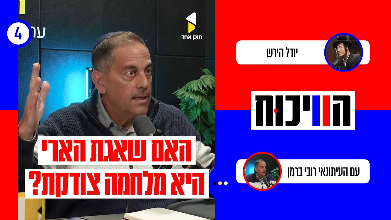 בפרק הרביעי של פודקאסט "הוויכוח" נפגשים יודל הירש, איש נטורי קרתא, ועיתונאי סקיי ניוז - רובי ברמן לעימות, מה חושב איש נטורי קרתא על המערכה מול איראן? ומה ההבדל בין ההגנה של פעם לנערי הגבעות של היום כשמדברים על טרור יהודי ביהודה ושומרון? שיחה חדה, אמיצה וטעונה, שחושפת פערים עמוקים ותגרום לכם לחשוב מחדש על כל מה שנראה מובן מאליו. **** להרשמה לרשימת התפוצה של תוכן אחד במייל, שלחו מייל: t023131400@gmail.com הרשמו עכשיו ונתראה בפרק הבא! לאתר https://tochen1.co.il/ להאזנה בקו הטלפון שלנו, חייגו: 02-31-31-400 כדי לעקוב אחרי הערוץ תוכן אחד ב-WhatsApp: https://whatsapp.com/channel/0029Vb6r2FP9xVJaJcOlVF1p