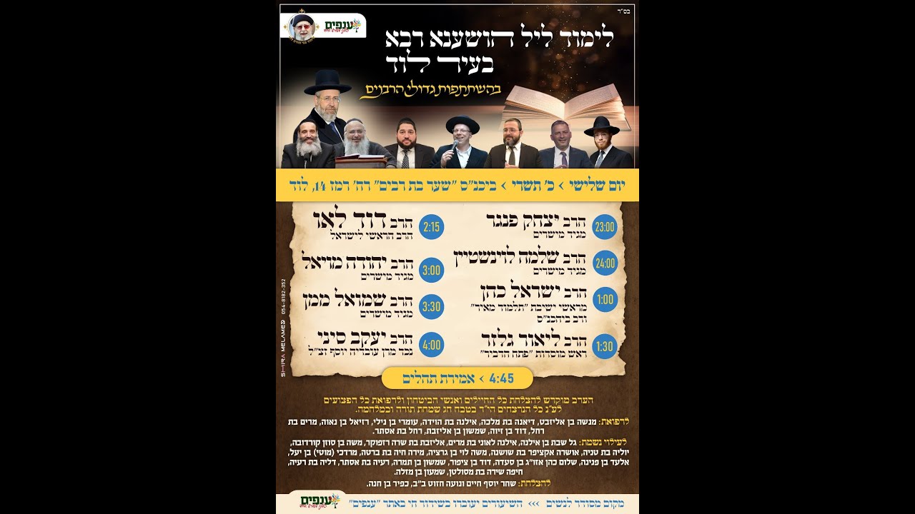 צפייה ישירה ב-YouTubeליל הושענא רבה המרכזי עם גדולי הרבנים. תשפ"ה 2024