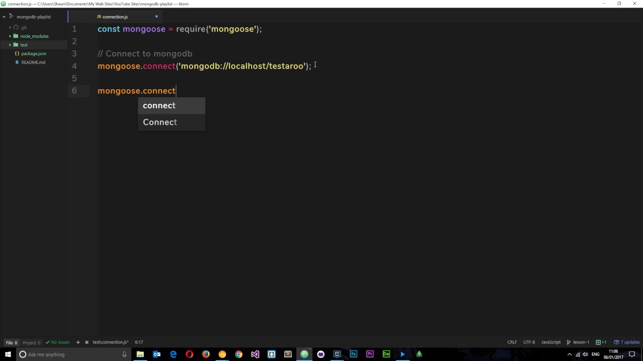 Hey gang, in this MongoDB tutorial for beginners, I'll shows you how we can connect to MongoDB using 'mongodb.connect'. To connect, we'll need to pass the method a connection string which matches up to the location of our database. ----- COURSE LINKS: + Repo - https://github.com/iamshaunjp/mongodb-playlist + Atom editor - https://atom.io/a + Download GIT - https://git-scm.com/ + CMDER - http://cmder.net/ + MongoDB - https://www.mongodb.com/ + Robomongo - https://robomongo.org/ JS Playlist - https://www.youtube.com/playlist?list=PL4cUxeGkcC9i9Ae2D9Ee1RvylH38dKuET NODEJS Playlist - https://www.youtube.com/playlist?list=PL4cUxeGkcC9gcy9lrvMJ75z9maRw4byYp ASYNC JS Playlist - https://www.youtube.com/playlist?list=PL4cUxeGkcC9jAhrjtZ9U93UMIhnCc44MH --------------------------------------------------------------------------------------------- You can find more front-end development tutorials on CSS, HTML, JavaScript, jQuery, WordPress, Node.js & more on the channel homepage... SUBSCRIBE TO CHANNEL - https://www.youtube.com/channel/UCW5YeuERMmlnqo4oq8vwUpg?sub_confirmation=1 ========== PSD to WordPress Playlist ========== https://www.youtube.com/playlist?list=PL4cUxeGkcC9gnow7e45LQFkNVxwQ5BH-W ============ Node.js for Beginners Playlist ============= https://www.youtube.com/playlist?list=PL4cUxeGkcC9gcy9lrvMJ75z9maRw4byYp ============== The Net Ninja ===================== For more front-end development tutorials & to black-belt your coding skills, head over to - https://www.youtube.com/channel/UCW5YeuERMmlnqo4oq8vwUpg or http://thenetninja.co.uk ================== Social Links ================== Twitter - @TheNetNinja - https://twitter.com/thenetninjauk