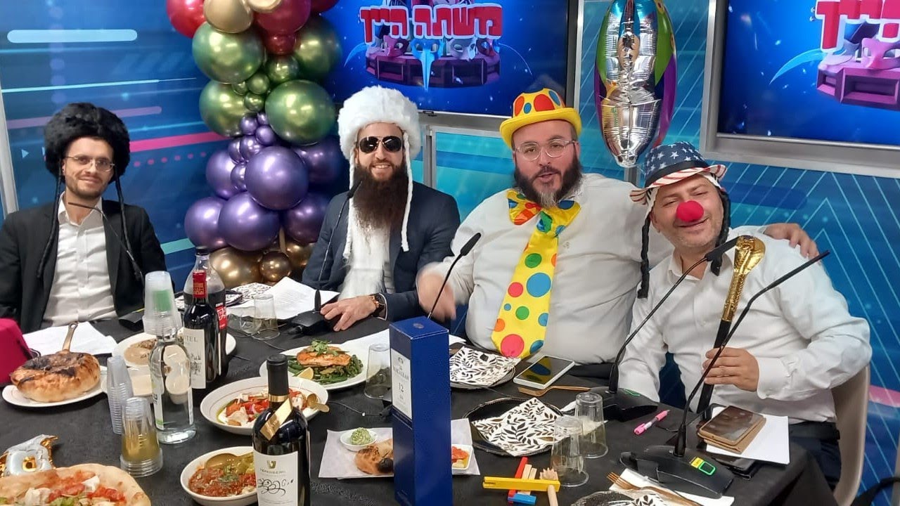 משתה היין | שר השמחה עמי מימון מארח את נבחרת הסטנדאפ החרדי כמידי שנה שר השמחה עמי מימון חוגג בתוכנית חידודון את ''משתה היין'' והפעם מארח את נבחרת הסטנדאפ החרדי: יעקב חמו, יהודה מויאל, מאור חובבה רפי אוחנה ועוד בסעודת פורים קורעת מצחוק | האזינו