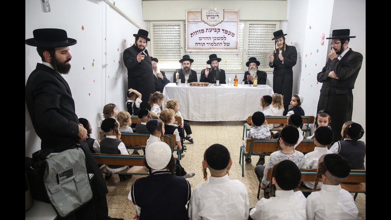 מעמד קביעת מזוזות למשכן החדש של תלמוד תורה ריבניץ בעיה"ק צפת. בהשתתפות רבני העיר הגה"צ רבי אליעזר ארנסטר שליט"א רב קרית מאור חיים והרב מאיר יארבלום, מו''צ העדה החרדית בצפת ובראשות הגאון רבי עקיבא הלוי וואזנער שליט"א. רב ומו"צ בהעדה החרדית בעיה"ק י-ם, ורבה של הת"ת אשר נשא נאום חוצב להבות לפני המלמדים והתלמידים בחשיבות חינוך הילדים לתורה מתוך ירא"ש, ולמדות טובות. צילום: דוד כהן