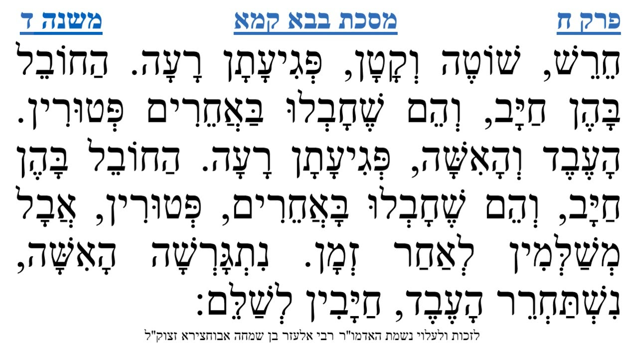 צפייה ישירה ב-YouTubeמסכת בבא קמא פרק ח משנה ד