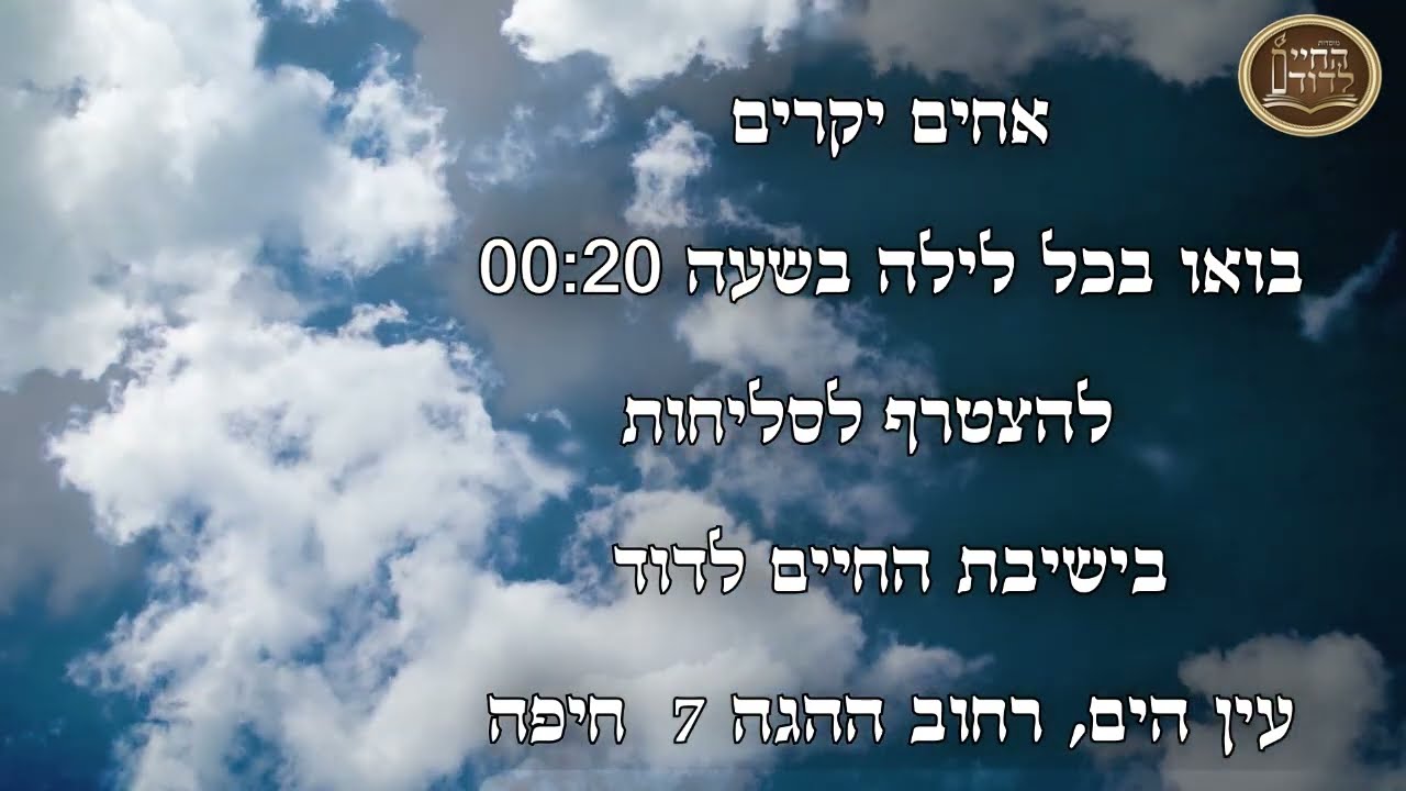 צפייה ישירה ב-YouTubeהצטרפו אלינו לסליחות מידי לילה בשעה 00:20 בישיבה