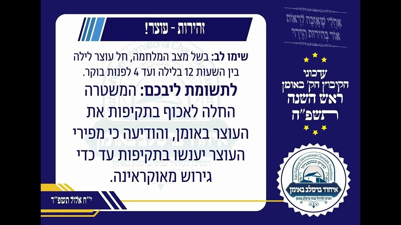 שבוע וחצי לראש השנה: גבאי ציון רבנו הקדוש הרב נתן צמח הי"ו בעדכונים ברשת מורשת על ההיערכות של איחוד ברסלב באומן לקראת הגעת הרבבות לאומן ראש השנה. פדיון נפש להמתקת הדינים בקבר רבי נחמן מברסלב ◄ https://rabbinachman.net/פדיון-נפש-אצל-רבי-נחמן/ שליחת שמות להזכרה בציון רבנו ◄ https://wa.me/97246664766 לקבלת עדכונים שוטפים על אומן בוואצפ ◄ https://chat.whatsapp.com/J5L5R8Dm5N1... אתר איחוד ברסלב - האתר הרשמי של קבר רבי נחמן מברסלב ◄ https://rabbinachman.net/ ציון רבי נחמן בטלגרם ◄ https://t.me/rabbinachman_net ציון רבי נחמן בפייסבוק ◄ https://www.facebook.com/UnionBreslev/ איחוד ברסלב באומן - המרכז לניהול ציון רבינו ושאר ענייני חסידות ברסלב בעיר אומן שבאוקראינה. אחים ואחיות יקרים, רוצים להיות מעודכנים ראשונים בכל סרטון חדש שעולה לערוץ היוטיוב של ציון רבי נחמן מברסלב? לחצו עכשיו על "הירשם כמנוי" (subscribe) בעמוד הבית של הערוץ של קבר רבנו וכמובן אל תשכחו ללחוץ על הפעמון 🔔 כדי שתמיד תישארו מעודכנים✔ - כנסו ולחצו עכשיו: https://www.youtube.com/@rabbinachman_net