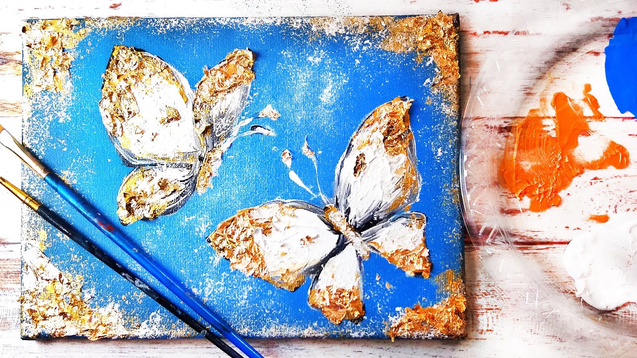 איך לצייר פרפרים בדרך פשוטה 🦋 צבעי אקריליק+ דפי זהב! איך לצייר באקרליק בלי ניסיון קודם בציור! 🎨 2020