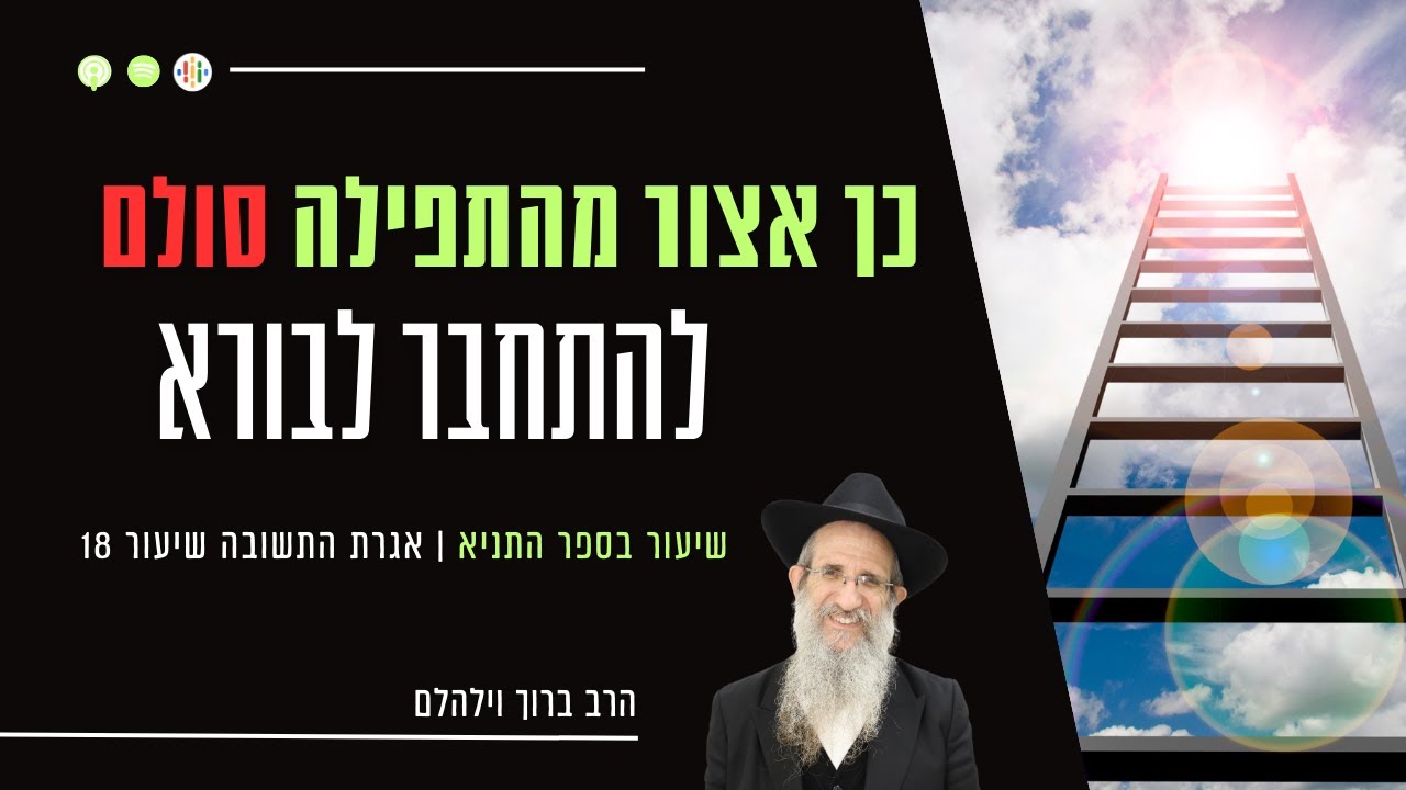 שיעור מספר 18 בסדרת שיעורים בחלק 'אגרת התשובה' שבספר התניא. בשיעור הנוכחי נלמד התפילה אינה רק מלמול מילים... אלא 'סולם' להתעלות ולהתחבר לבורא ! #הרב_ברוך_וילהלם #תניא #כך_אצור_מהתפילה_סולם_לחיבור_עם_הבורא