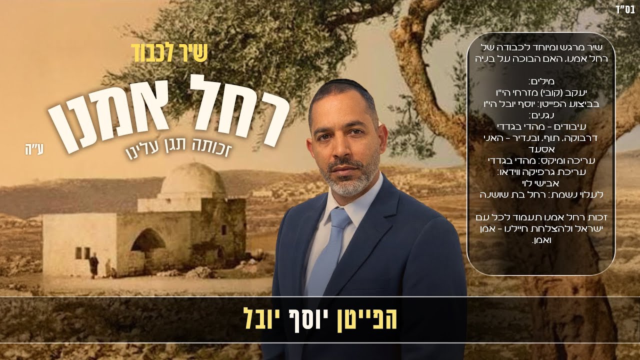 בס"ד ''תפארת המזרח'' הפייטן יוסף יובל בשיר מרגש לכבודה של רחל אמנו ע"ה האם הבוכה על בניה מילים: יעקב (קובי) מזרחי לחן:עממי אלוקי . עד מתי דמעתה על פניה ? הבט בפניה אל מרום . רחל מבכה על בניה , מבכה רחל על בניה , אל חון נא עליה אב רחום יה אבי ×2 יה אבי עד אן תשכחה עד מה תקנא בבן אהוב עד אן יאובד בן עזוב יה אבי . בשר נא בשר לבניה כי בא גואלם ולאמא רחל מחי דמעה על בניה ישגו רחמי כי יש שכר לפועלך יכתירו שמך בבוא גואלם בכל תבל ישבחו עליון לתקן עולמך יה אלי לתקן את עולמך אב המון יכתירו שמך חי עולמים בין ארץ שמים וימים גלה אבי חסדך בכל העמים גלה את תפארתך בכל לאומים רק בך שמתי אבי מבטיחי ליל ויומם רק באבי נגיל ולך אבי נביא מנחה לעולה מנחתי קח נא יה מידי אחלה פניו , אחלה פניו אב, יה אבי תן חיים אלי ומזון ומטר אלי אל תעצור טלך אל נורא תן נא ביקום תחיה נפשות נא אל רחום לתקן עולמך עד בא ינון שמך יתרומם אדון יה בראת יקום לתפארה שומרהו אדון יה . ולאמא רחל תרחם ושבו בנים לגבולם יה חביב ורם אתה אבי ושמך בליבי שמור מי ידע את גודלך מי ידע פעלך מי ידע את סוד כבודך יה אבי אהוב ,אהוב, אהוב, יה אבי. נגנים: עיבודים – מהדי בגדדי דרבוקה, תוף, ובנדיר – האני אסעד עריכה ומיקס: מהדי בגדדי עריכת גרפיקה ווידאו: אבישי לוי לעלוי נשמת: רחל בת שושנה זכות רחל אמנו תעמוד לכל עם ישראל ולהצלחת חיילנו – אמן ואמן חבר יקר! הירשם כמנוי לערוץ תפארת המזרח הפעל את האפשרות 'כל ההתראות' (לחץ על הפעמן בצד שמאל) בדף הראשי תהנה ותתעדכן ממיגוון סירטונים בעולם הפיוט. לחץ על הקישור הבא.. https://youtube.com/@tifaret-hamizrach?si=EnSIERSGP5r4tSB-