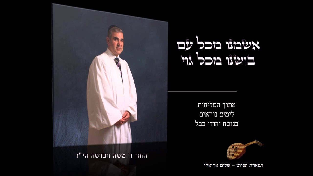 צפייה ישירה ב-YouTubeאשמנו מכל עם החזן ר' משה חבושה נוסח בבלי מיוחד מקאם לאמי מרגש