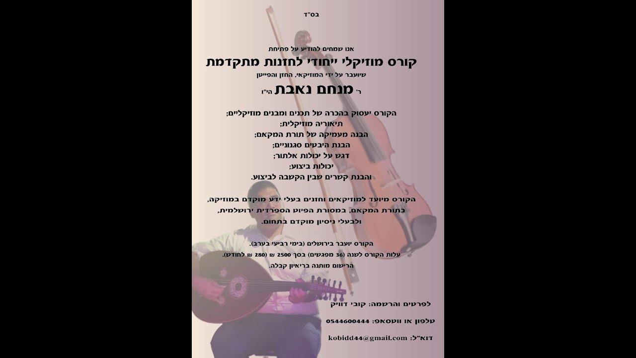 חזן? רוצה להיות יותר? קורס ייחודי למתקדמים (לא למתחילים) לשיפור כל היכולות.. להרשמה..https://web.whatsapp.com/send/?phone=9720544600444