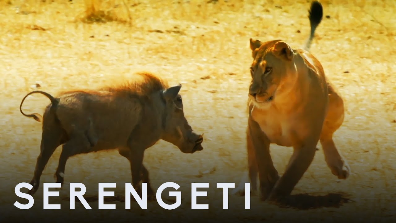 Nala and Pumbaa may have gotten along in The Lion King but, on the Serengeti, life is rarely problem free. Watch new dramatised natural history spectacular, narrated by John Boyega: https://bbc.in/2RMDqeA Subscribe: http://bit.ly/BBCEarthSub Serengeti is a dramatised natural history series. Here’s a link if you’d like more information about how the show was made https://www.bbc.co.uk/programmes/articles/56hrR8TxDCSYFPtl4zZnwTm/how-we-made-serengeti Watch more: Planet Earth http://bit.ly/PlanetEarthPlaylist Blue Planet http://bit.ly/BluePlanetPlaylist Planet Earth II http://bit.ly/PlanetEarthIIPlaylist Planet Dinosaur http://bit.ly/PlanetDinoPlaylist Serengeti This pioneering series follows the interconnected stories of a cast of iconic savannah animals over one year. With unique access to a pristine and unspoilt corner of the Serengeti deep in the heart of Africa, this series captures the drama of the animals’ daily lives and the emotional moments they face. Join the lonely lioness, exiled from the pride, the passionate baboon desperately trying to win back his lost love and the cheeky, fun-loving mongoose family on the lookout for a free lunch. Packed full of humour, heartbreak and nail-biting tension, their captivating adventures will keep you hooked. Using groundbreaking filming techniques and an original music score to put you at the heart of the action, Serengeti brings this incredible world of real-life animal drama to the screen in intimate and breathtaking detail. Welcome to BBC EARTH! The world is an amazing place full of stories, beauty and natural wonder. Here you'll find 50 years worth of entertaining and thought-provoking natural history content. Dramatic, rare, and exclusive, nature doesn't get more exciting than this. This is a commercial channel from BBC Studios. Service & Feedback https://www.bbcstudios.com/contact/contact-us/