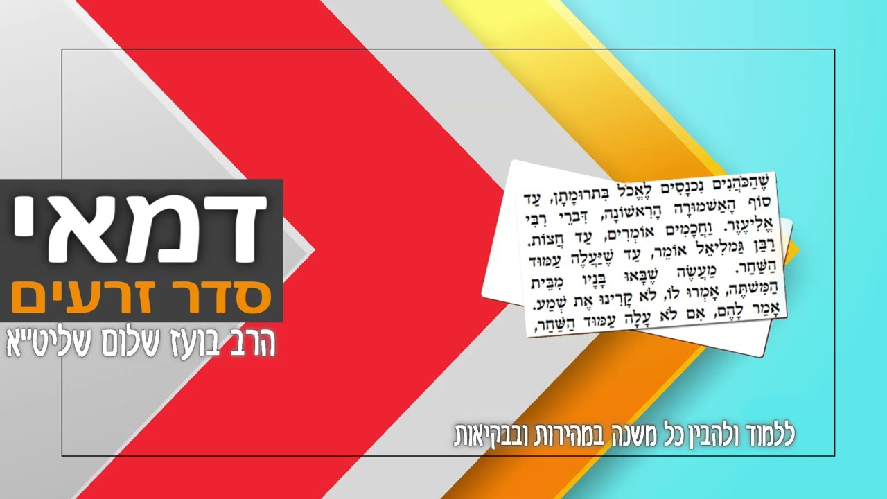 המשנה היא קובץ של פרשנויות על המקרא שתרם רבות לעיצוב היהדות וארגון החיים היהודיים לאחר חורבן הבית השני. המשנה חוברה במשך כמה דורות משלהי ימי הבית השני ובעיקר ב-150 השנים שעברו מאז חורבנו בשנת 70 לספירה. המשנה מחולקת לשישה 'סדרים', המכילים כל אחד מספר 'מסכתות'. כל מסכת עוסקת בנושא ספציפי אחד המרומז בשמה של אותה המסכת. סדרי המשנה נועדו להוות קו מנחה ובסיס איתן לשם קביעת ההלכות בקהל ישראל, לדורות. סדר זרעים – עוסק בברכות ובמצוות התלויות בארץ. מכיל 655 משניות ב-11 מסכתות. סדר מועד – עוסק בשבתות, חגים ותעניות. מכיל 681 משניות ב-12 מסכתות. סדר נשים – עוסק באישות, קידושין, גירושין וכדומה. מכיל 578 משניות ב-7 מסכתות. סדר נזיקין – עוסק בדיני ממונות וסדרי המשפט. מכיל 685 משניות ב-10 מסכתות. סדר קדשים – עוסק בבית המקדש ובקורבנות. מכיל 590 משניות ב-11 מסכתות. סדר טהרות – עוסק בסוגי טומאות וטהרתן. מכיל 1,003 משניות ב-12 מסכתות. שישה סדרי משנה סדר זרעים: ברכות, פאה, דמאי, כלאיים, שביעית, תרומות, מעשרות, מעשר שני, חלה, עורלה, ביכורים. סדר מועד: שבת, עירובין, פסחים, שקלים, יומא, סוכה, ביצה, ראש השנה, תענית, מגילה, מועד קטן, חגיגה. סדר נשים: יבמות, כתובות, נדרים, נזיר, סוטה, גיטין, קידושין. סדר נזיקין: בבא קמא, בבא מציעא, בבא בתרא, סנהדרין, מכות, שבועות, עדויות, עבודה זרה, אבות, הוריות. סדר קודשים: זבחים, מנחות, חולין, בכורות, ערכין, תמורה, כרתות, מעילה, תמיד, מידות, קינים. סדר טהרה: כלים, אוהלות, נגעים, פרה, טהרות, מקוות, נידה, מכשירין, זבים, טבול יום, ידיים, עוקצים. הרב בועז שלום שליט"א הוציא בשנים האחרונות אלפי שיעורי תורה במגוון נושאים. שיעורים מעמיקים בתנ"ך, משנה, דף היומי, מחשבה, מוסר, הלכה, אגדה, עין יעקב, אור החיים, חומש עם רש"י, כלי יקר, דרשות על פרשת שבוע, ועוד. הרב מכהן כיו"ר ארגון 'טעמו וראו', וראש מדרשת 'בית אליהו' ברחוב דב גרונר 11 בבני ברק. במשך שנים עסק הרב במסירת הרצאות ובקירוב רחוקים בארגון 'ערכים' ובערוץ 'הידברות' במגוון נושאים. כמו כן מוסר הרב שיעורים קבועים במדרשת 'פסגות' שברחוב בן ציון גליס 37 אזוה"ת סגולה בפ"ת. הרב בועז שלום חיבר שני ספרים 'משנת החלומות' ו'משנת הגלגולים'. לרב בועז שלום אתר אינטרנט בשם "טעמו וראו" שם תוכלו למצוא את כל שיעוריו בכתובת https://taamu.co.il השיעורים ניתנים לשמיעה ואף להורדה בחינם. באתר ניתן אף להעיר או לשאול על השיעורים ולקבל את תגובת הרב. זכות השיעור לעילוי נשמת אברהם בן ימנה ויעקב ויוסף בן אורה וחיים.