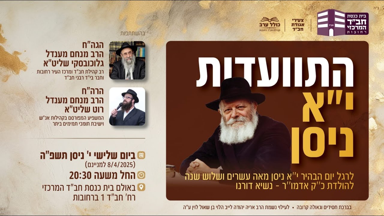 התוועדות חסידית יא ניסן - תשפד - עם הרבנים הרה"ח מנחם מענדל גלוכובסקי והרה"ח משה אורנשטיין
